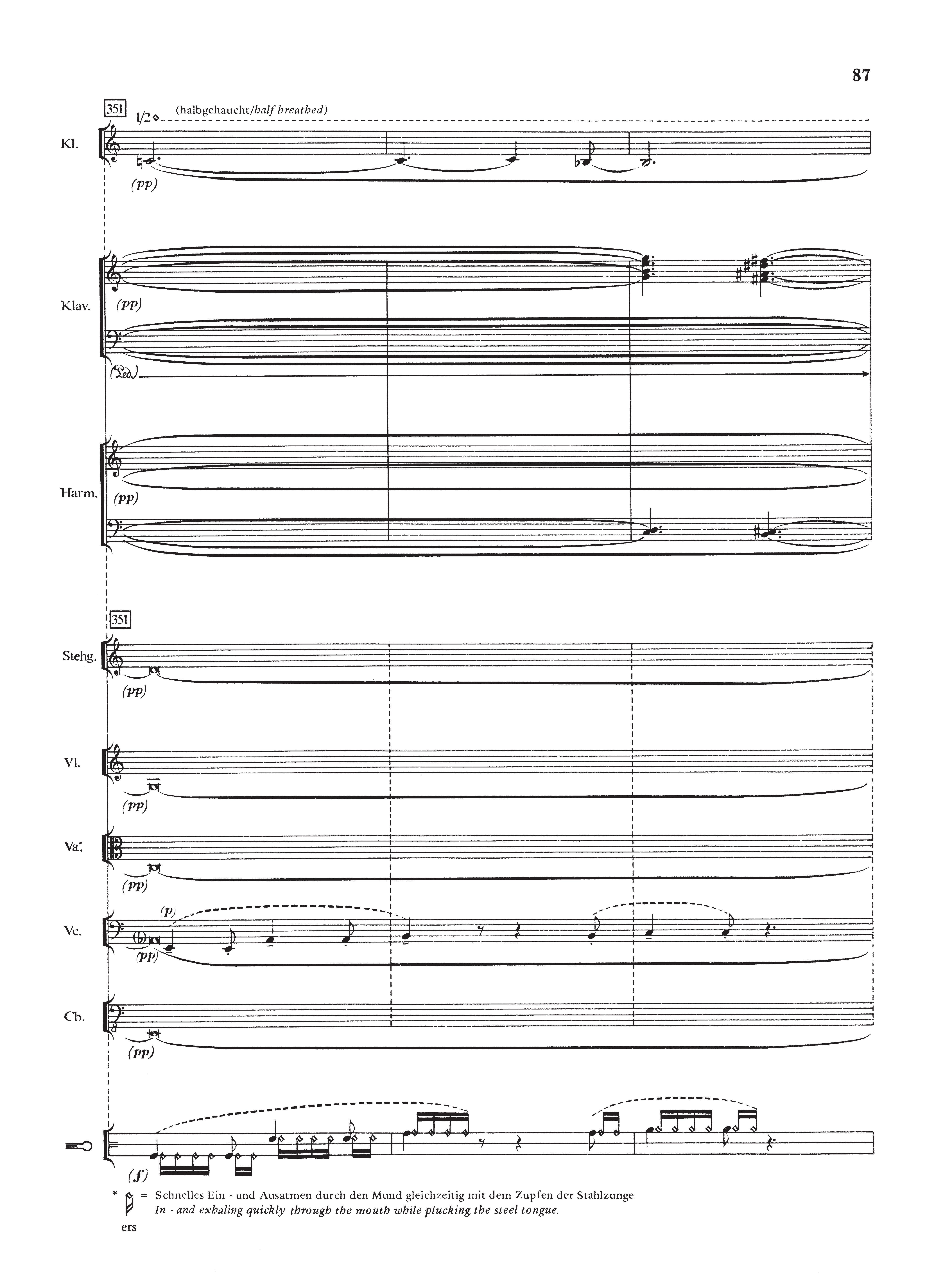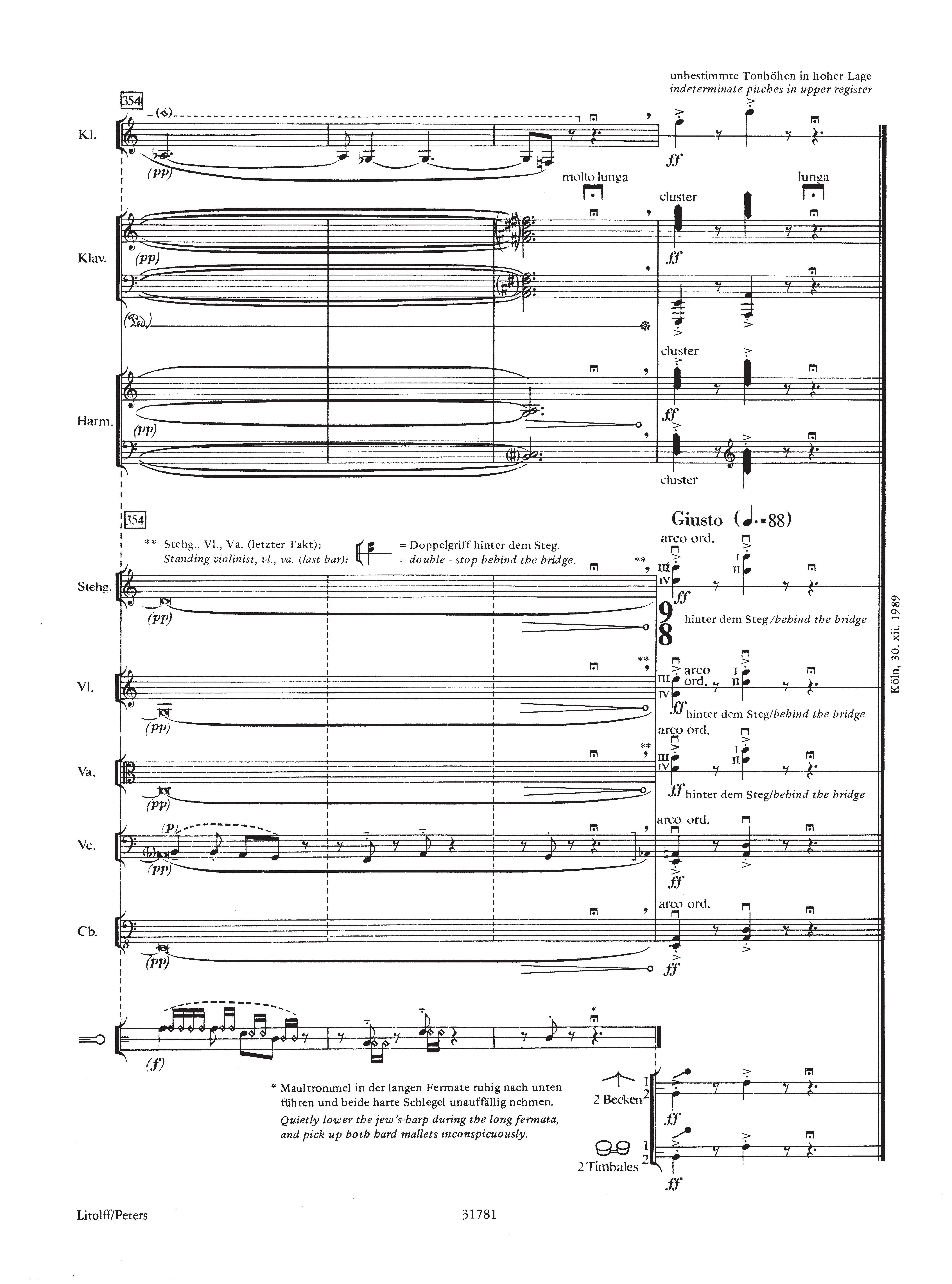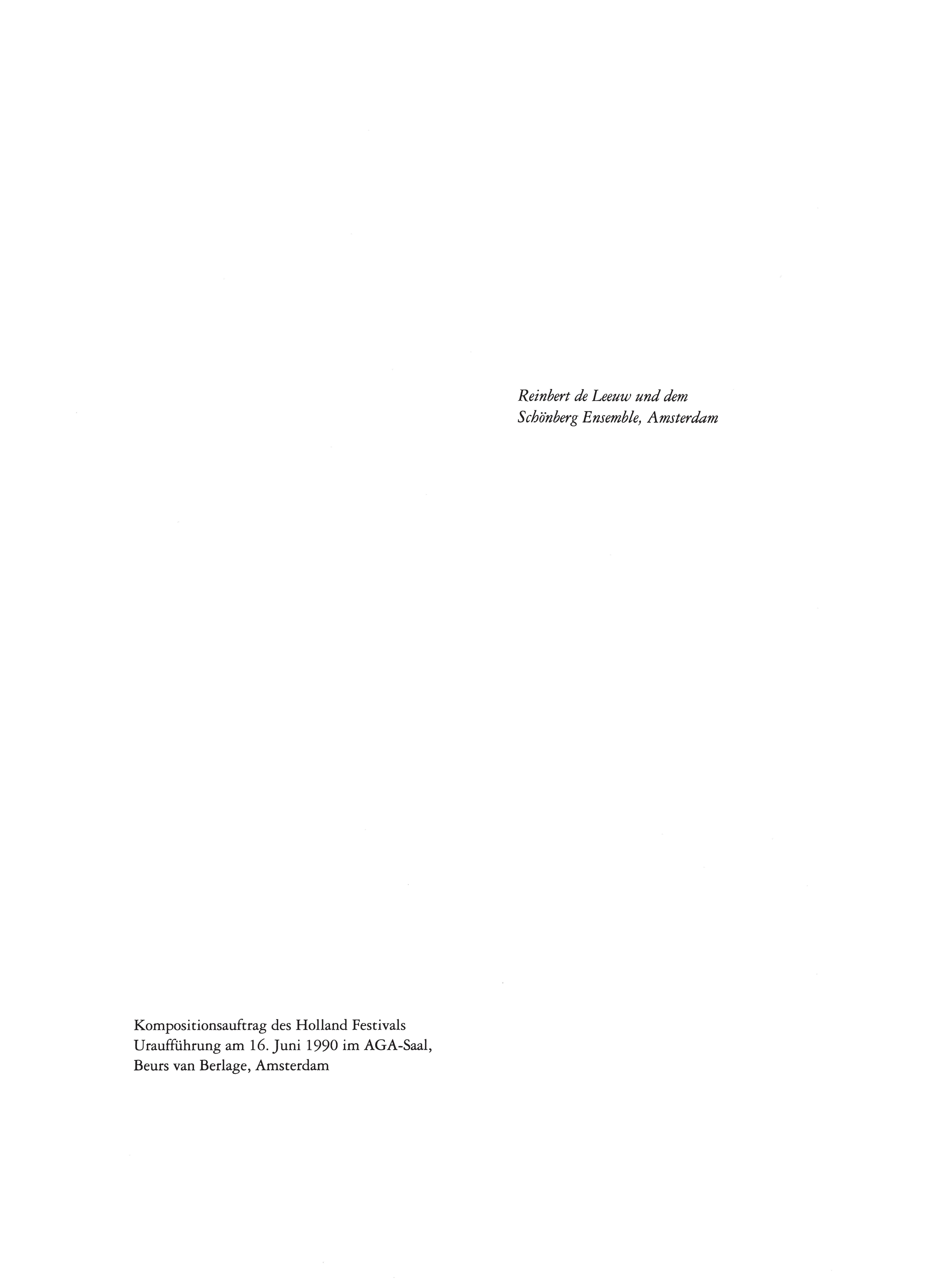 Mauricio Kagel (1931–2008), whose work as a composer and multimedia artist was famed for its imagination, originality and humour, left a lasting imprint on the development of music theatre – the genre in which his radical innovations arguably proved most infuential. At the same time, however, he also developed a highly personal aesthetic in other, more abstract genres. His impressive creative output encompasses not only stage, orchestral and chamber works for a great variety of different scorings, but also flms, radio plays and essays. He received numerous awards for his compositions throughout his lifetime, including the Erasmus Prize (1998), the Ernst von Siemens Music Prize (2000) and the Großer Rheinischer Kunstpreis (2002). In 2007 he was awarded an honorary doctorate by the University of Siegen.