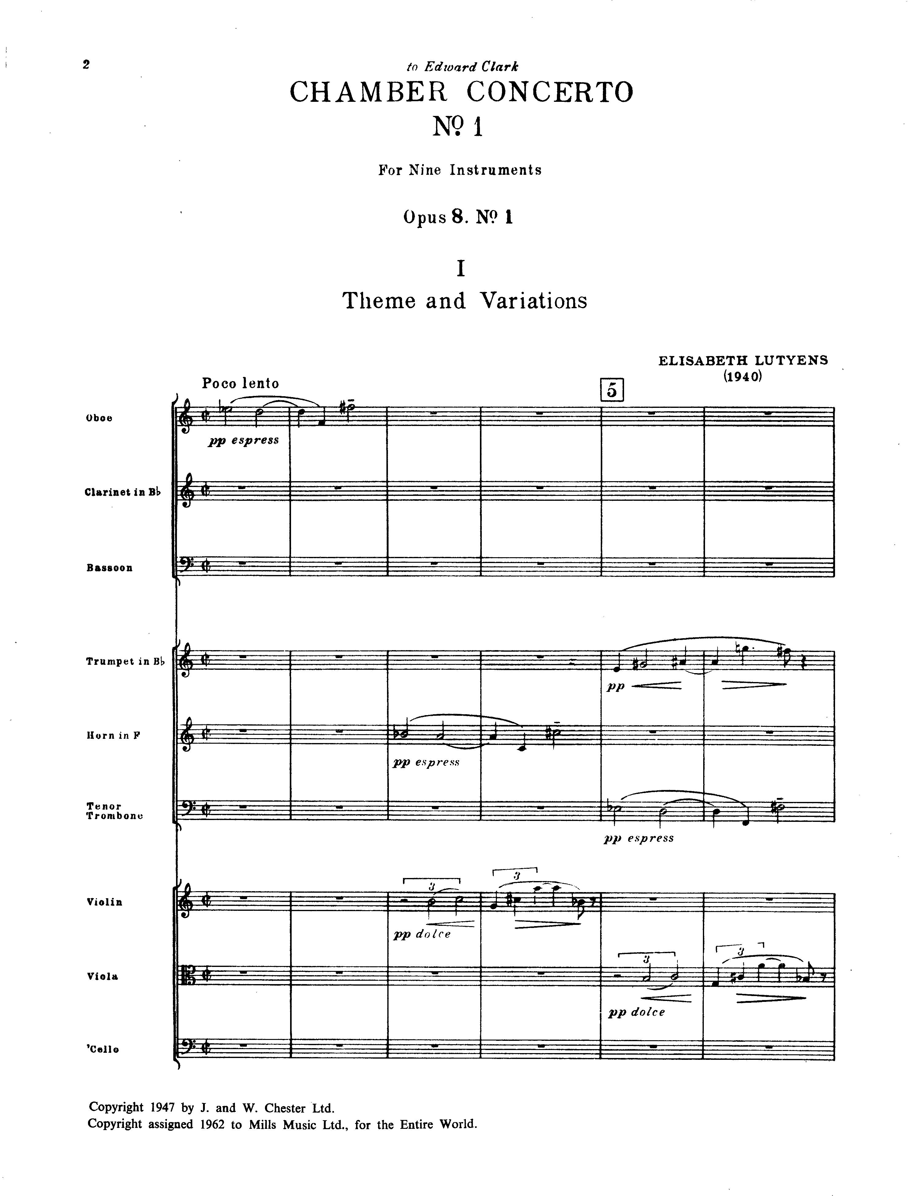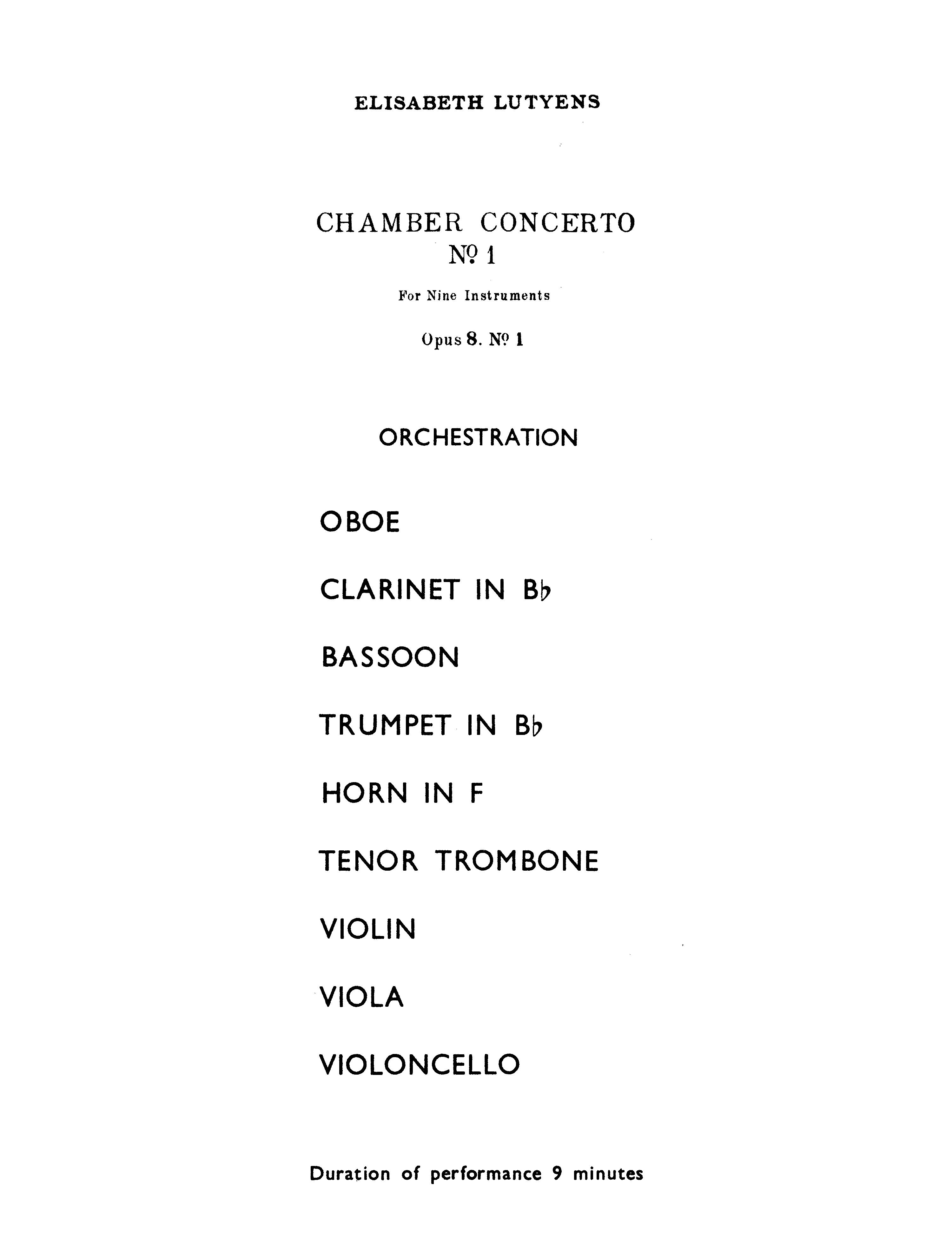 Lutyens CHAMBER CONCERTO NO 1, (Op 8, No 1)