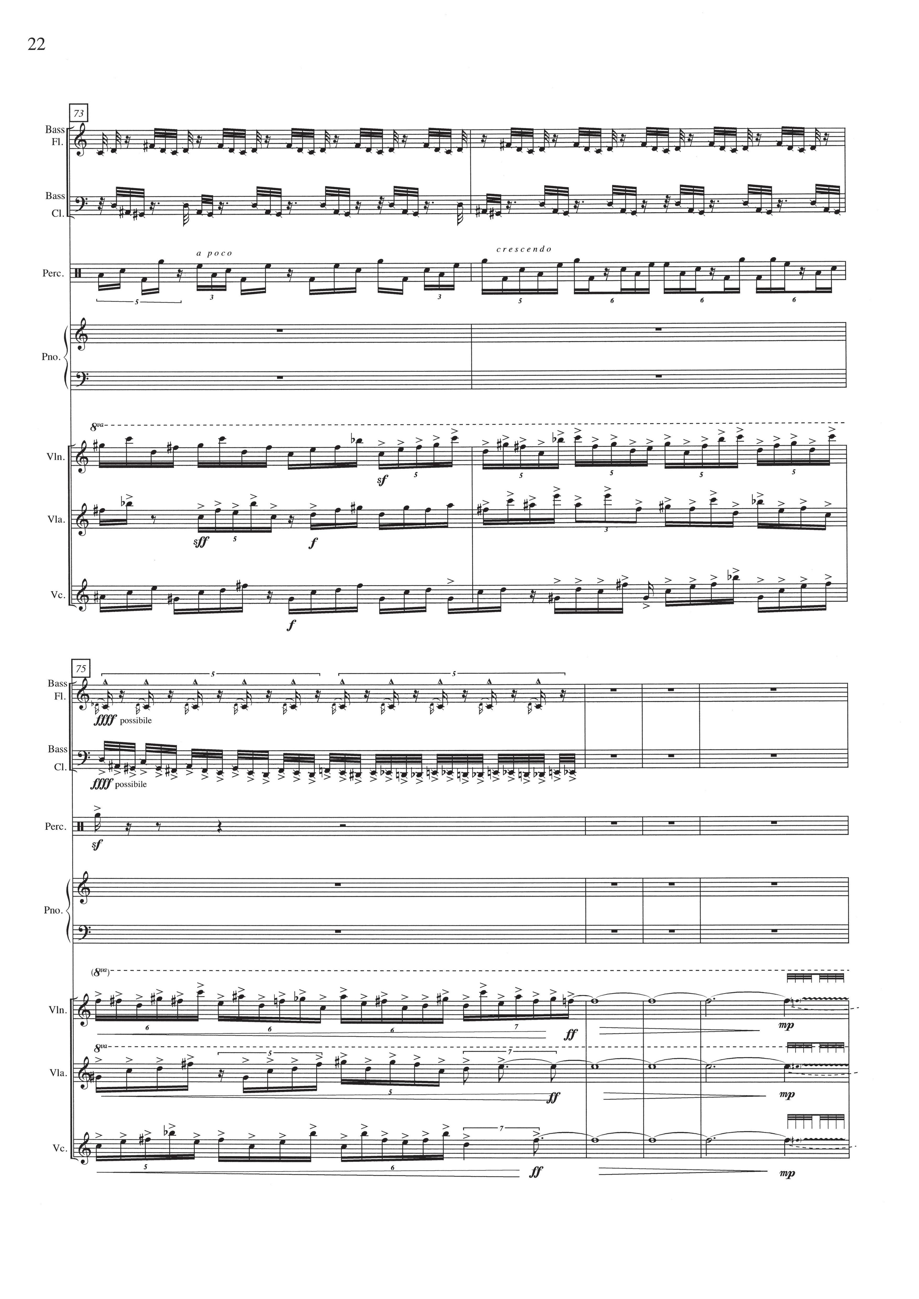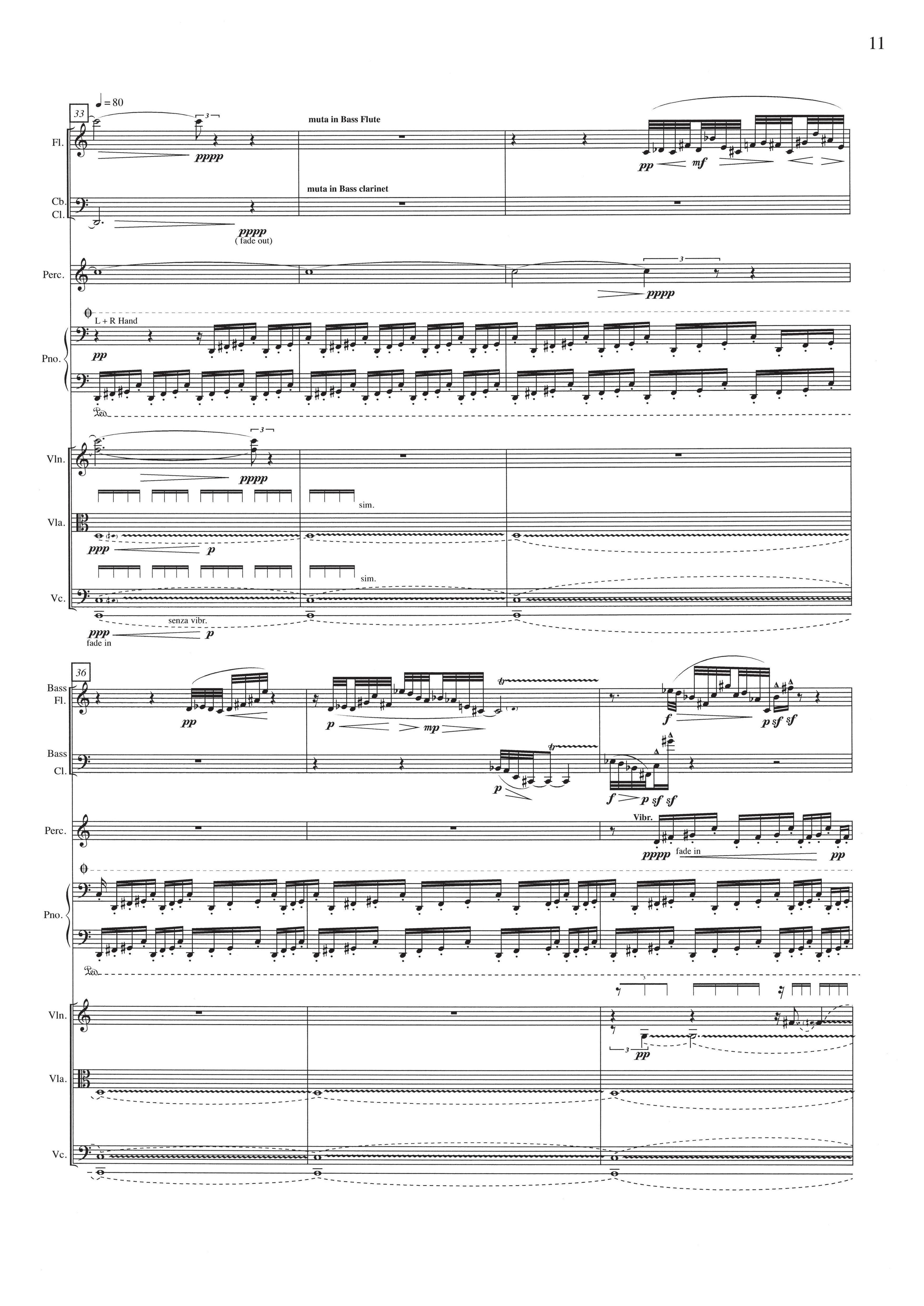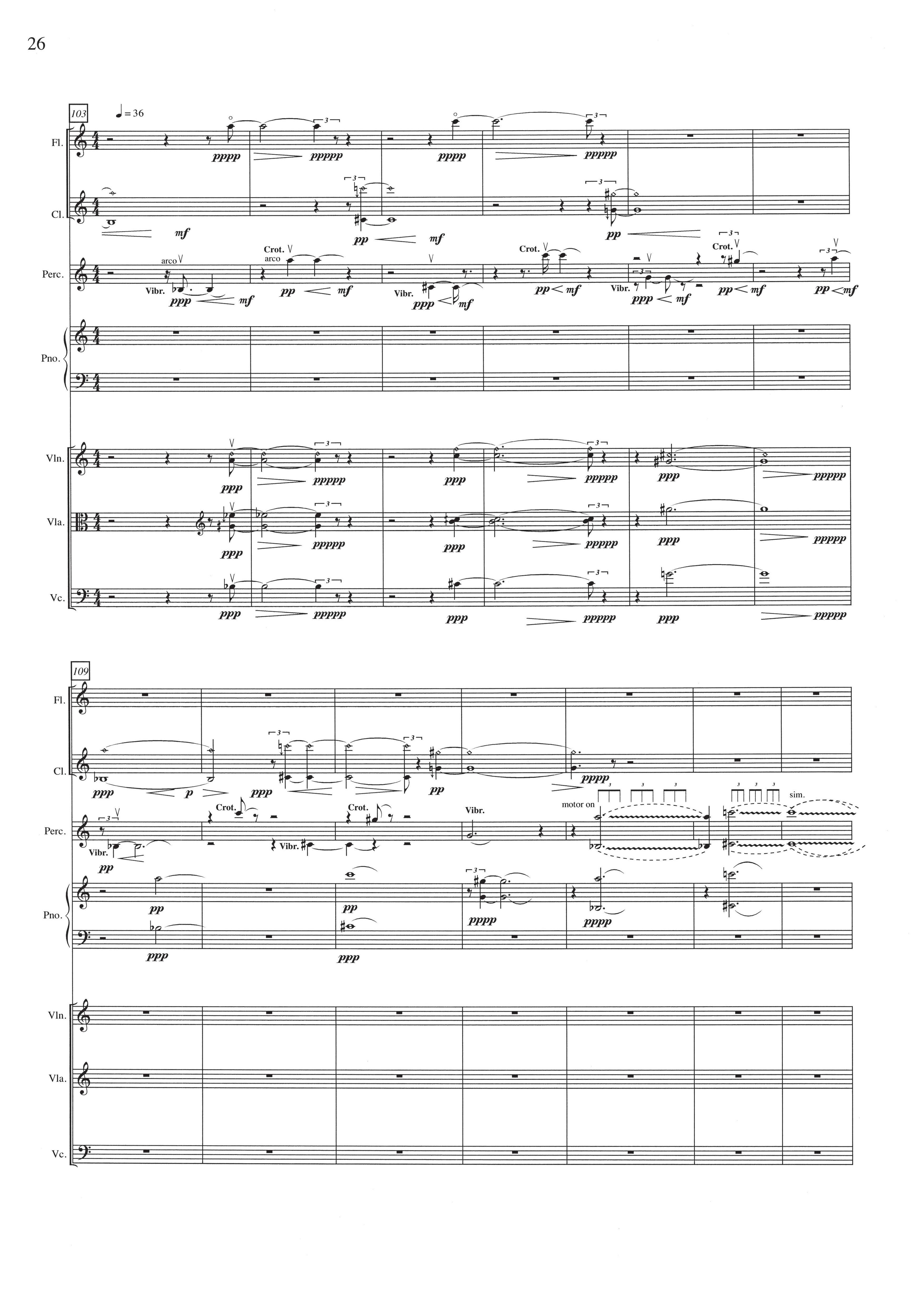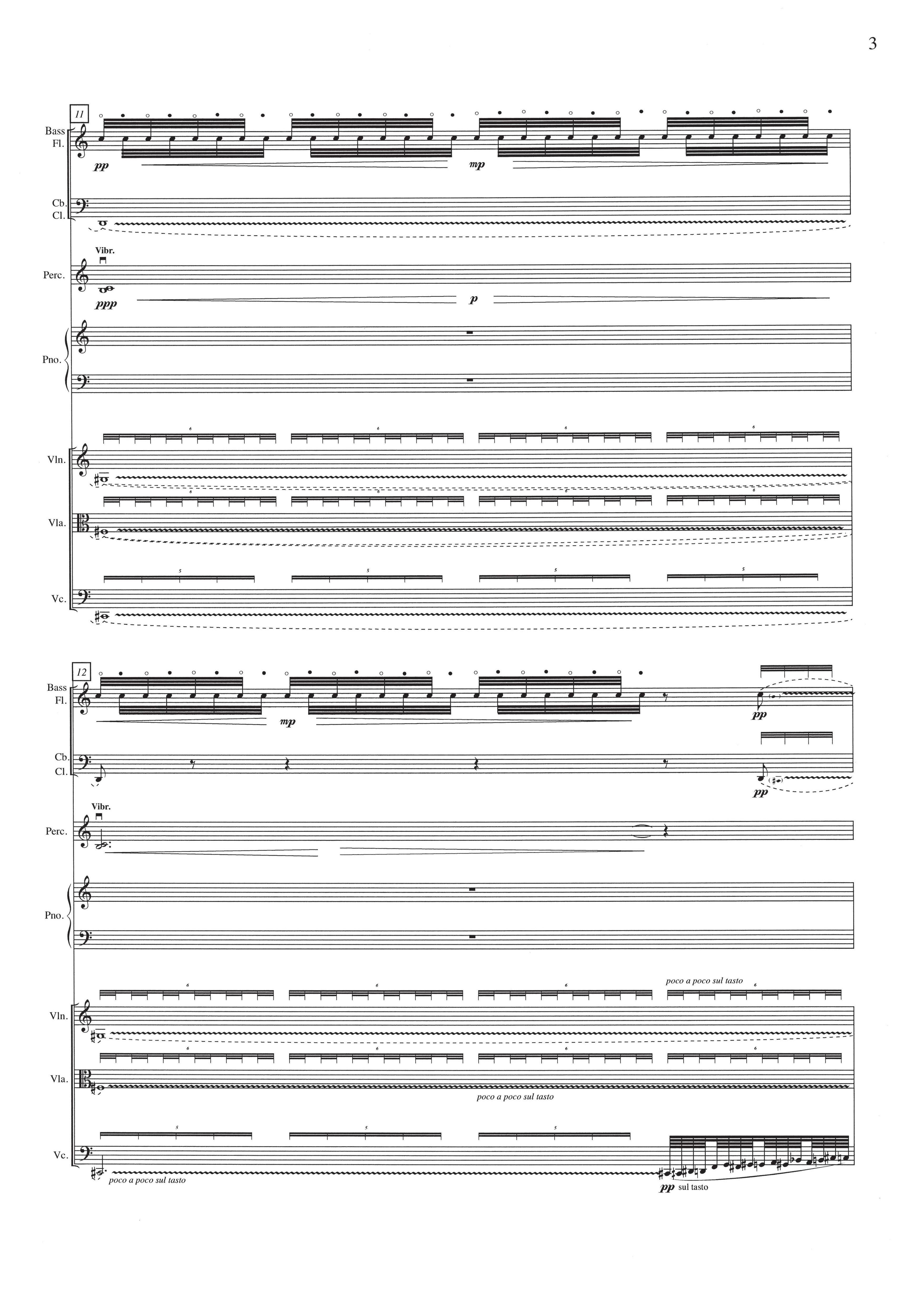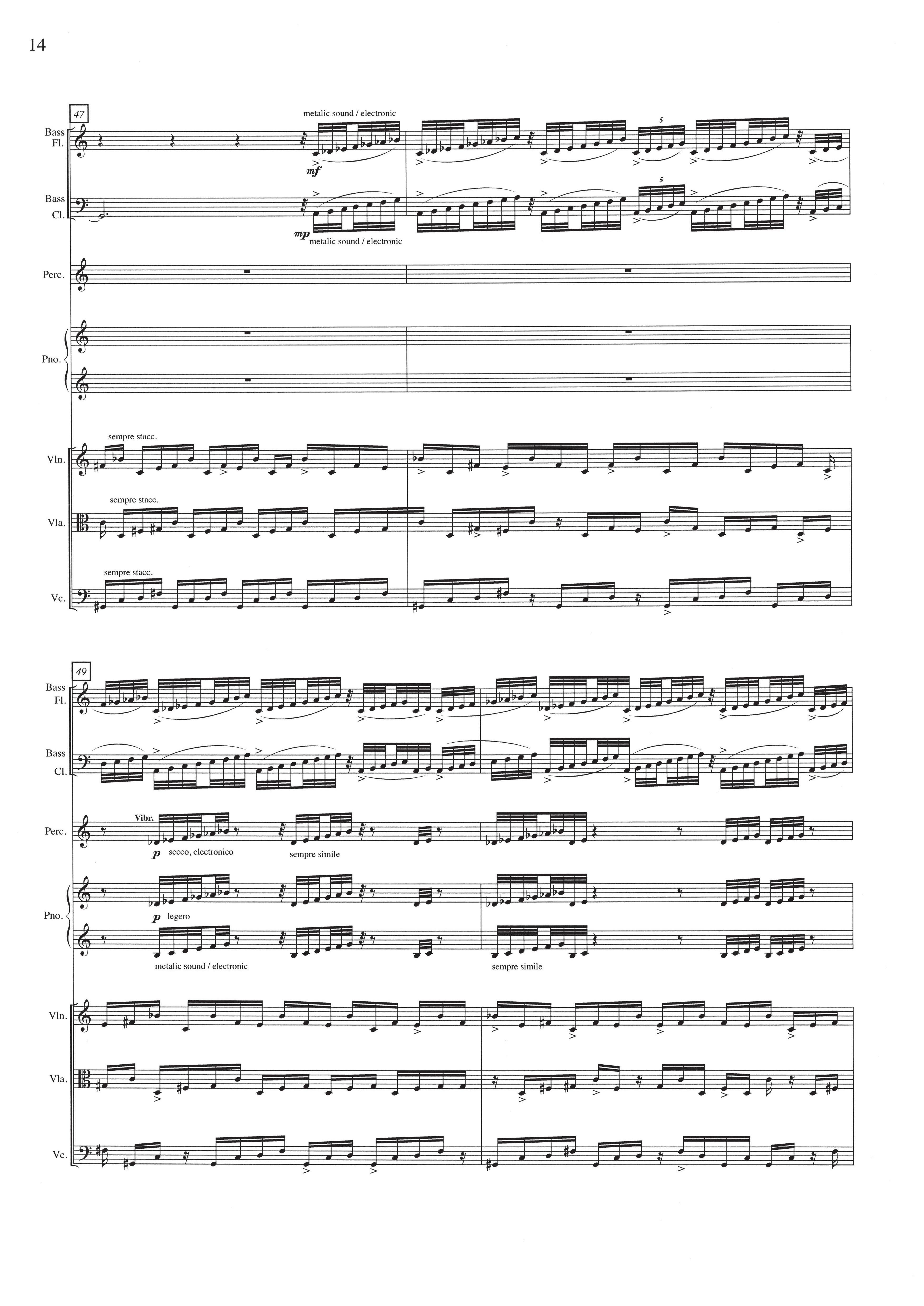 Percussion (1 Player): Crotales (2 octaves), Vibraphone, 2 Gongs (a, d’), 5 Octotoms, small Tam-tam