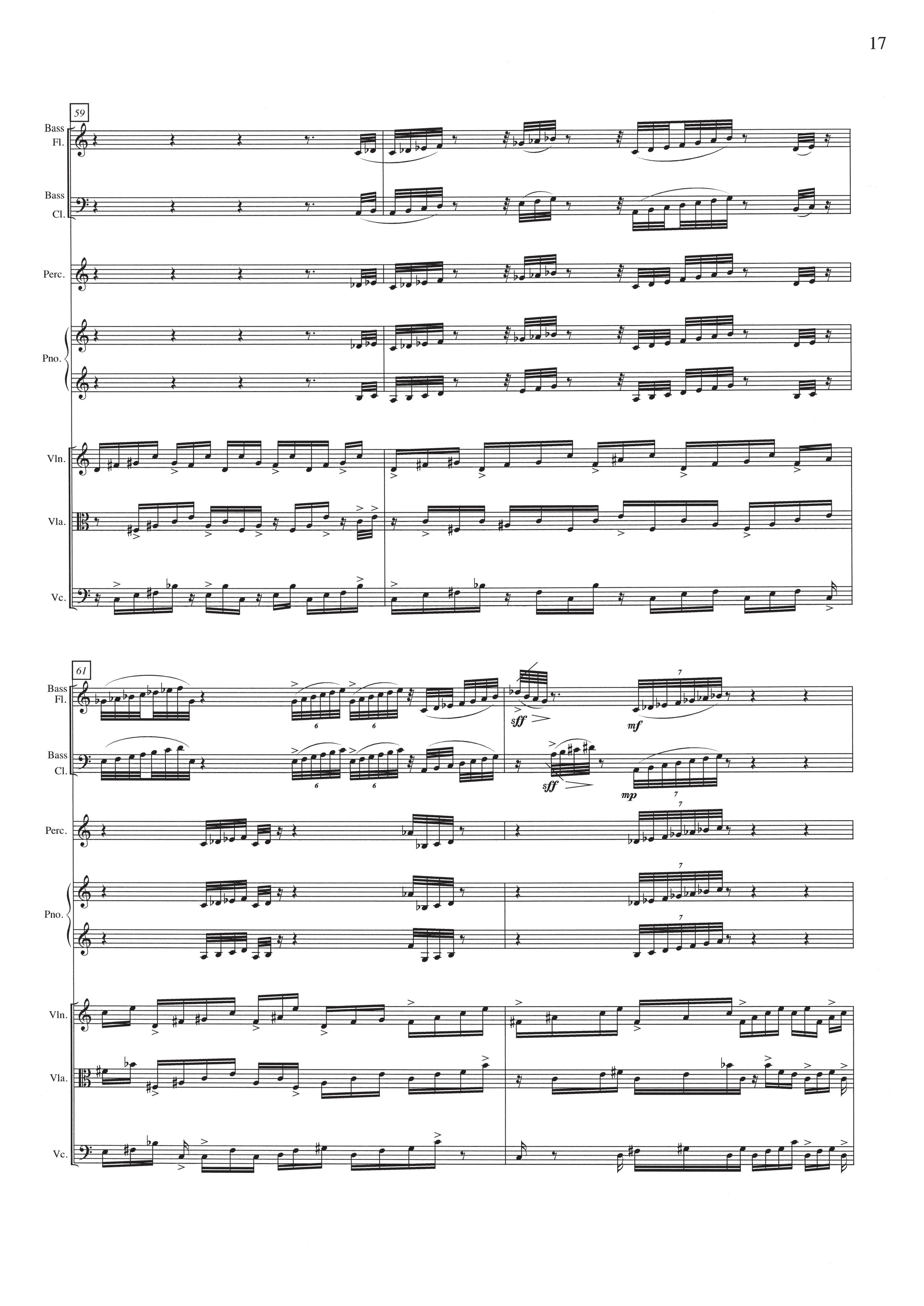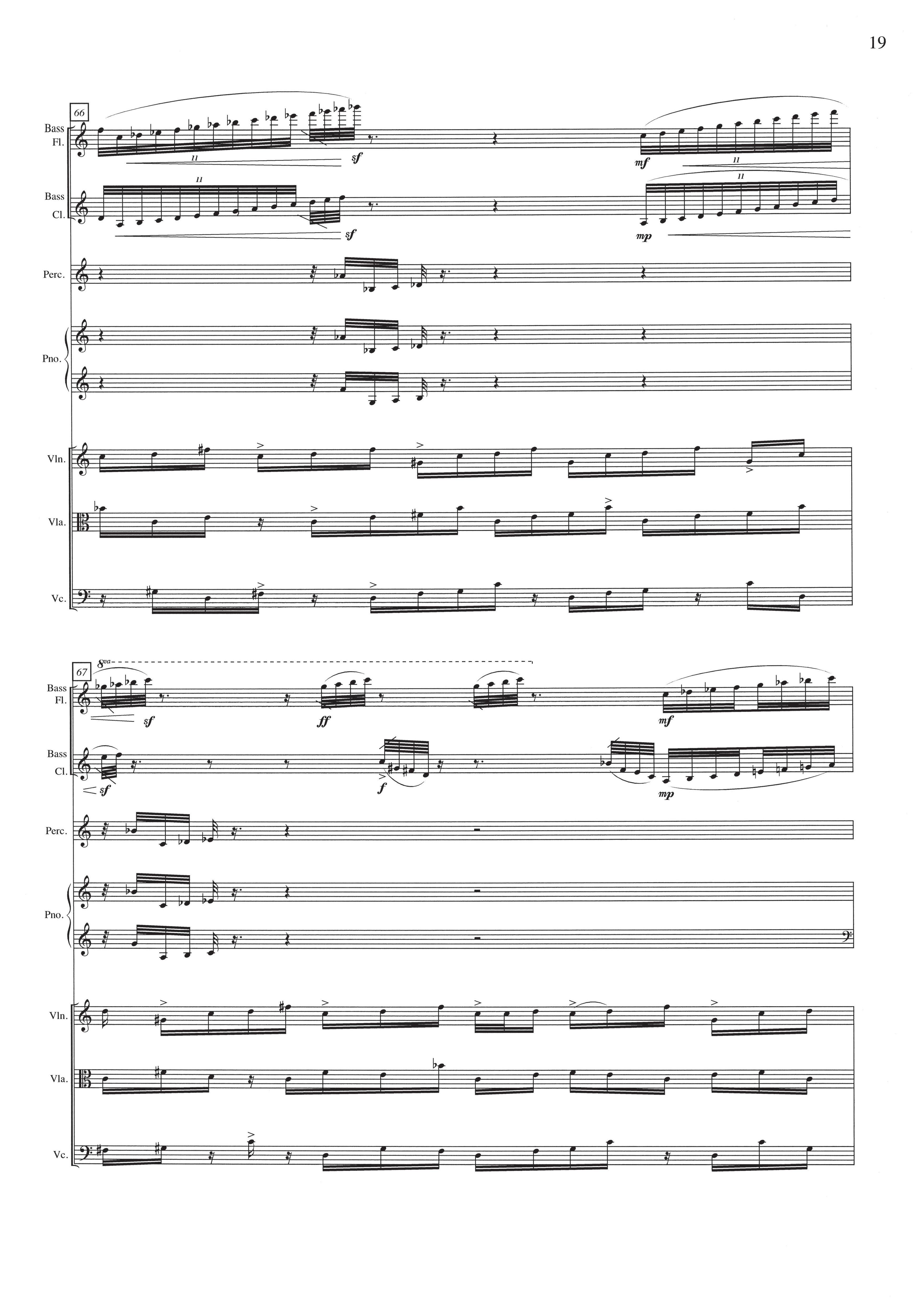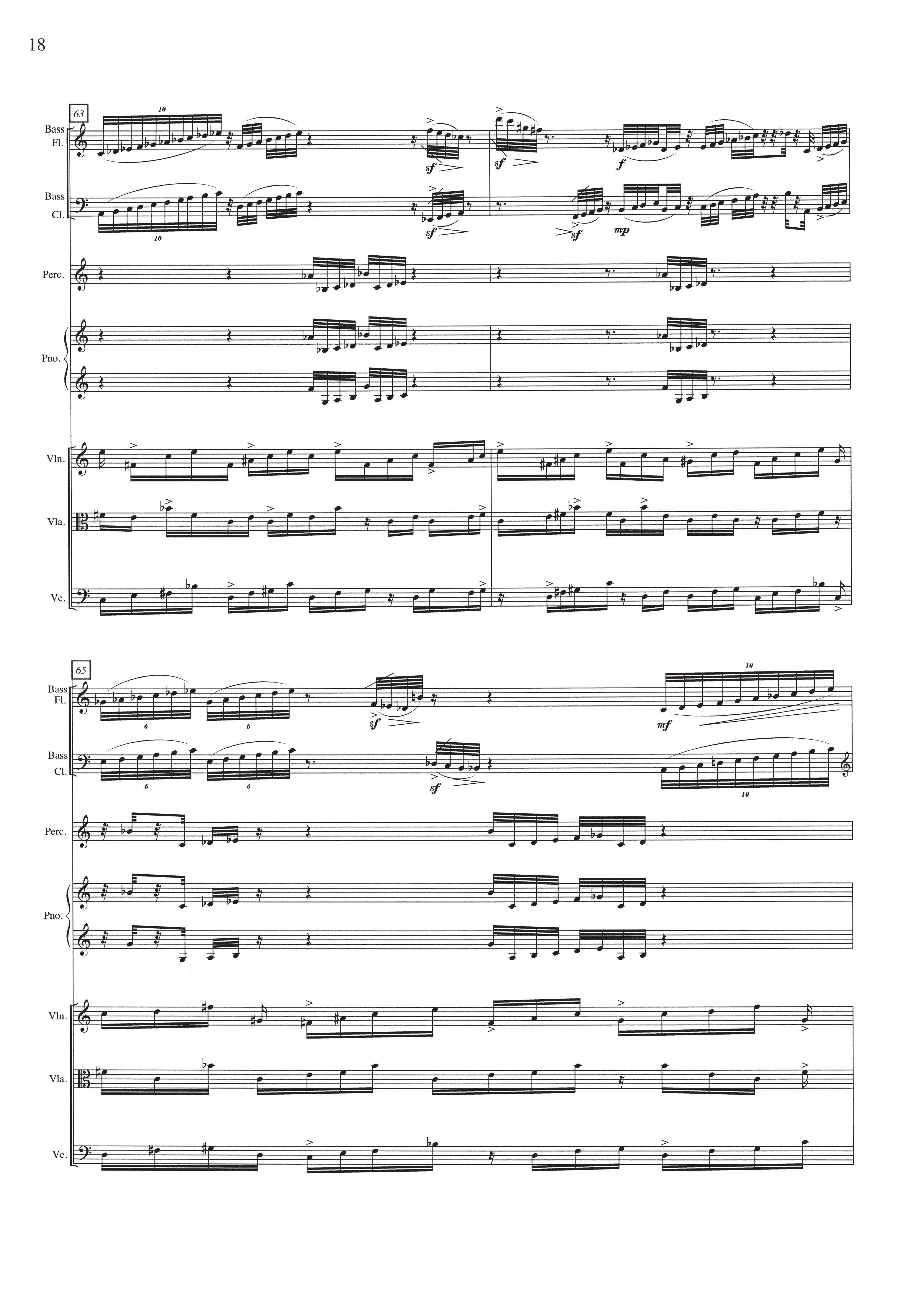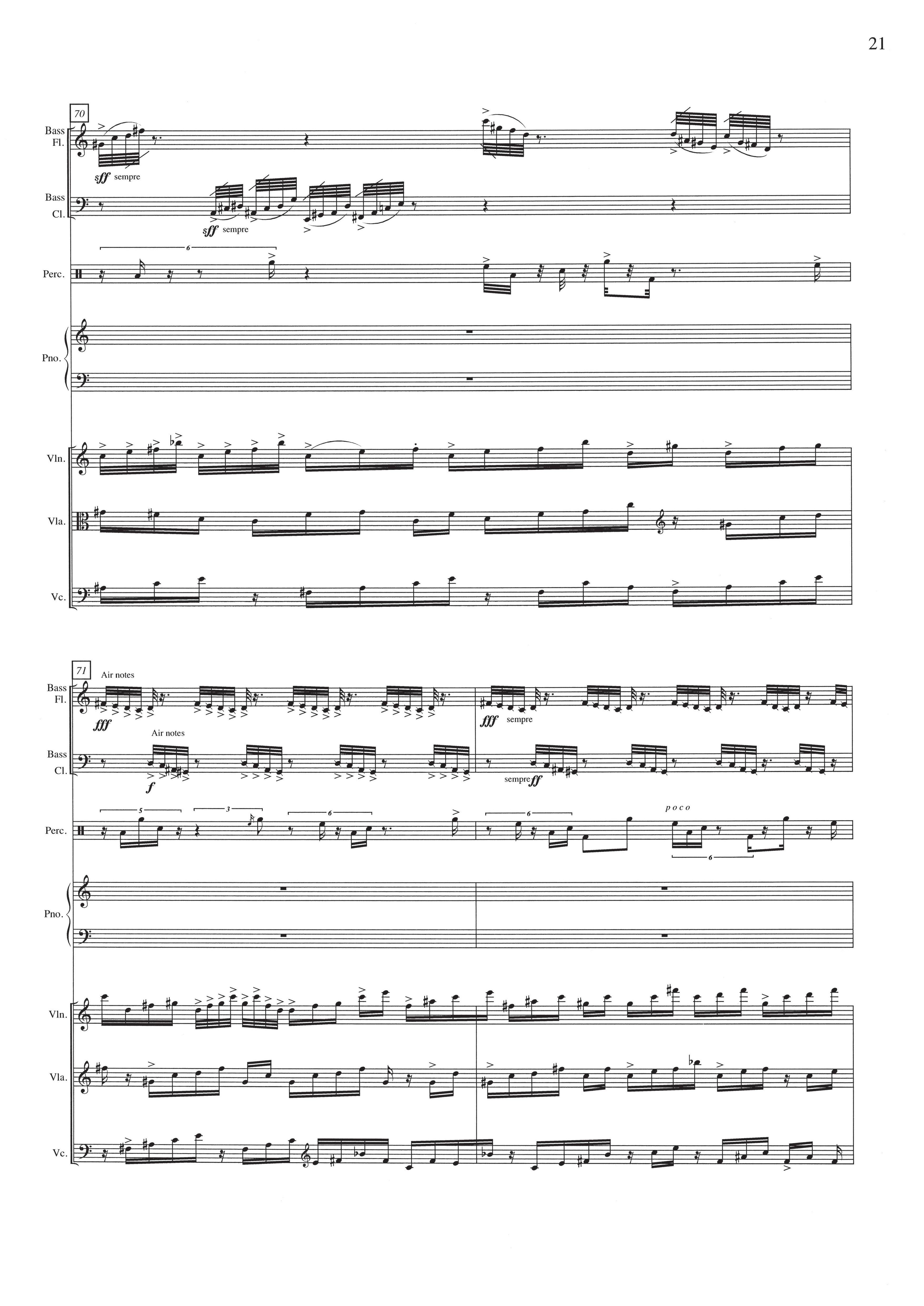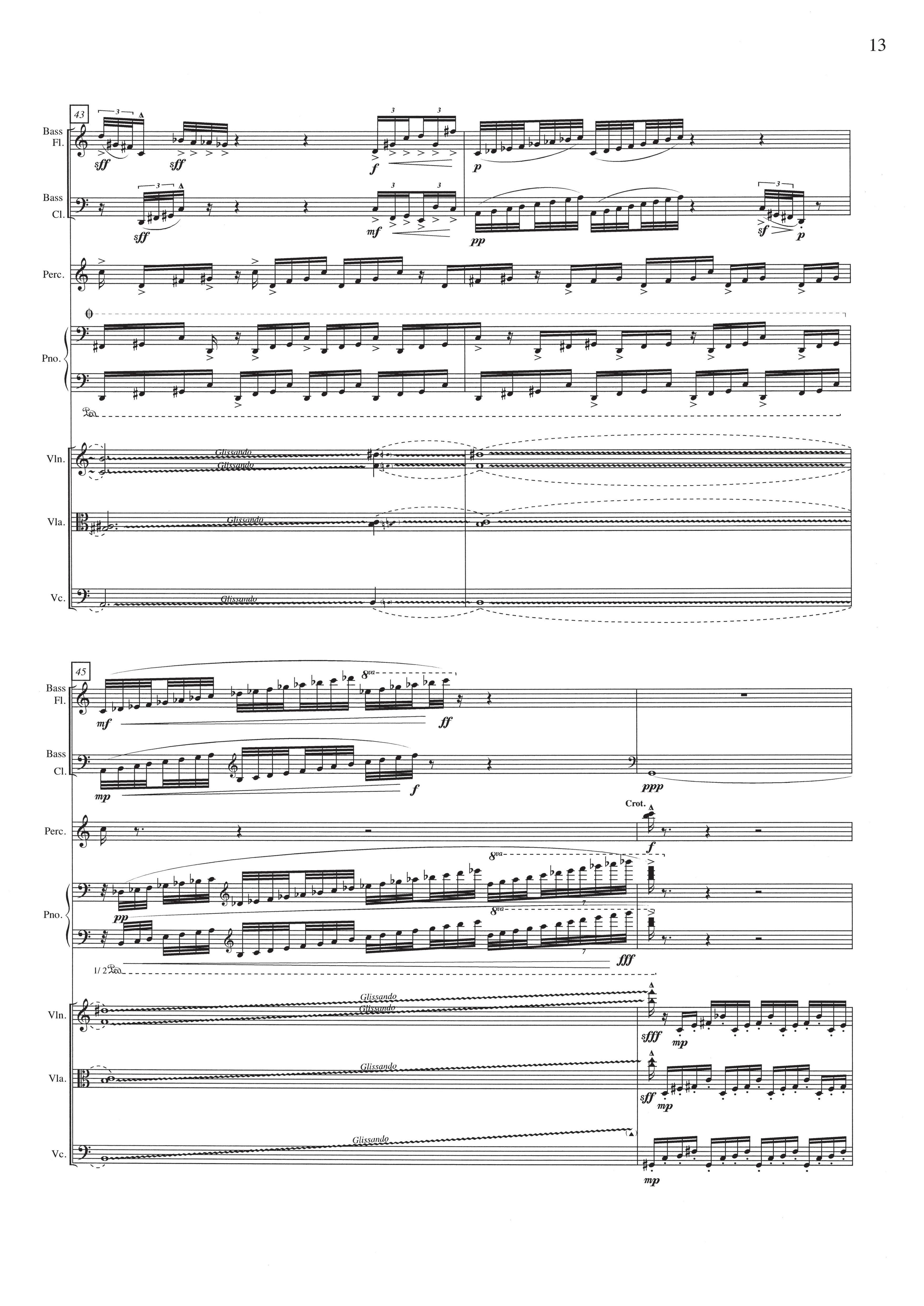 Percussion (1 Player): Crotales (2 octaves), Vibraphone, 2 Gongs (a, d’), 5 Octotoms, small Tam-tam