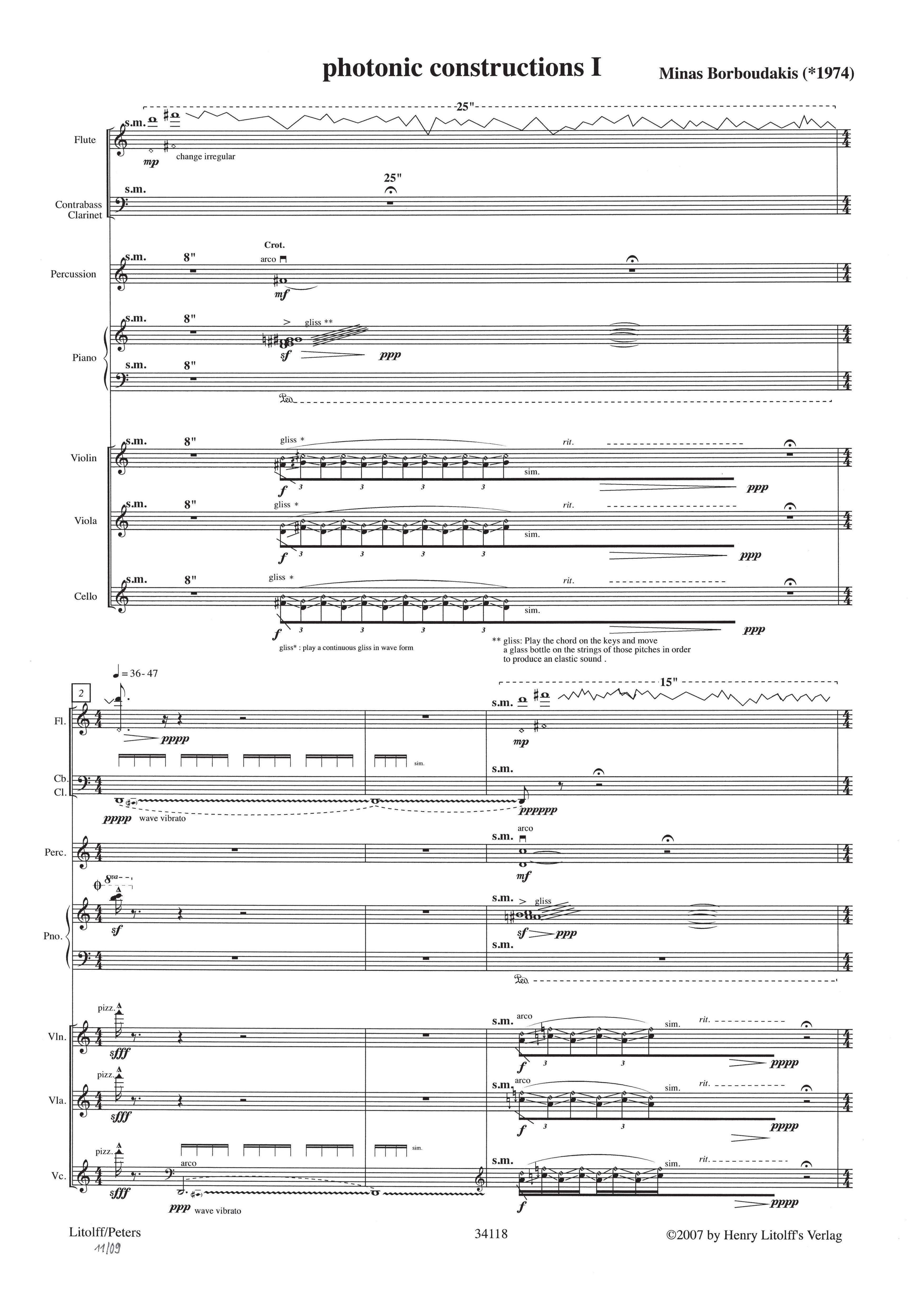 Minas Borboudakis (b. 1974) studied composition and piano in Munich and Hamburg. He attended masterclasses with Luciano Berio, George Crumb, Wolfgang Rihm, Rudolf Kehrer and Aleksey Nasedkin, and regularly appears as a pianist all over Europe, performing his own music and other repertoire of the 20th and 21st centuries. His style is characterized by microtonality, percussive timbres and glissando sounds, and explores the inspiration he derives from ideas of time and space as well as from a close study of classical philosophy, literature and mythology. His work also reflects a contemplation of scientific and cosmological questions. With its strong rhythmic momentum, his music incorporates archaic tonal systems and ancient Greek rhythmic patterns, as well as experimental electronic sounds. These, in turn, have an immediate impact on the treatment of the acoustic material, resulting in an interweaving of the two.