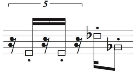 Boxnotation: V = create Versions of immediately preceding passage bow pressure specification (relative): high