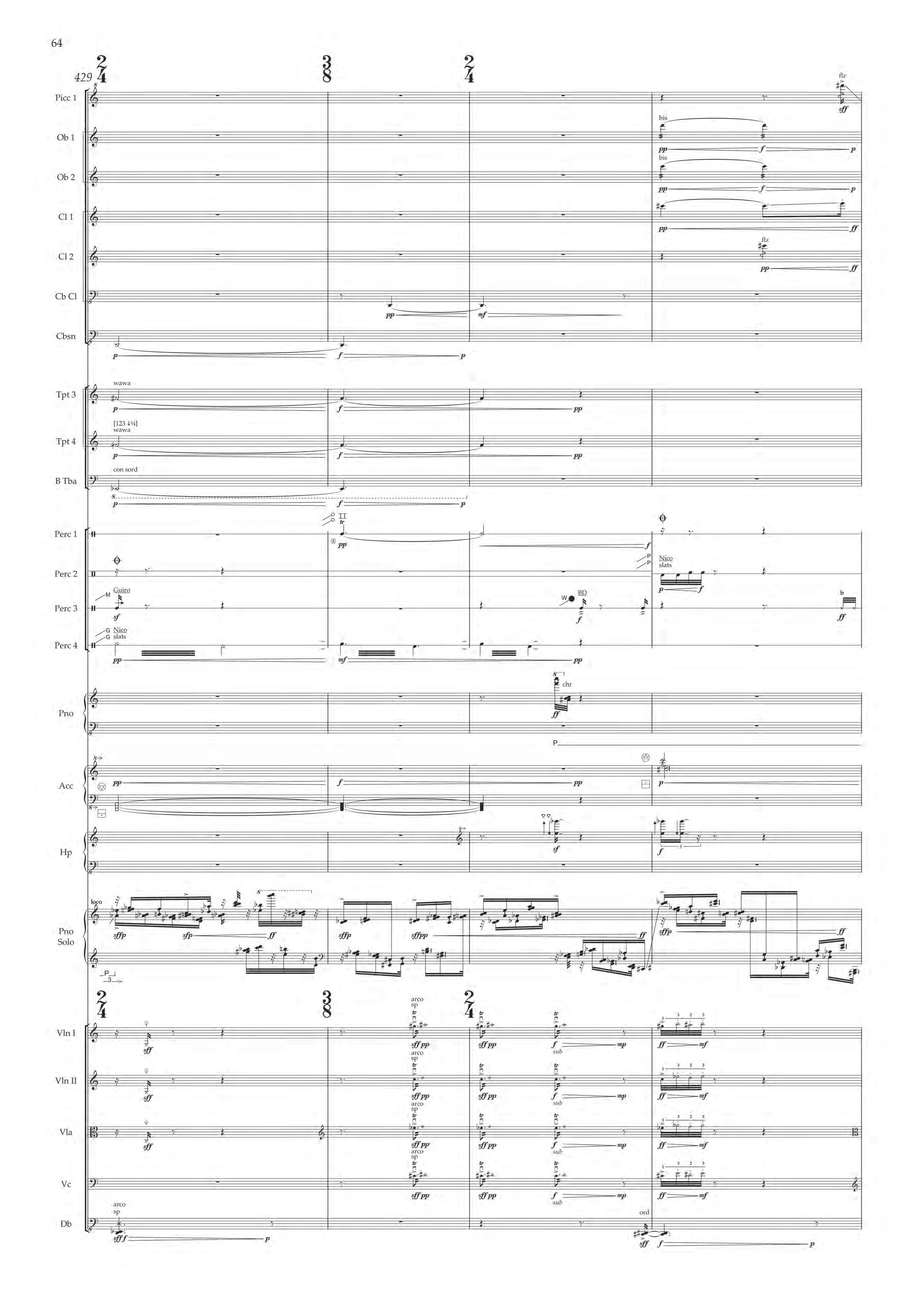 Commissioned by Roche as part of ROCHE COMMISSIONS for LUCERNE FESTIVAL. World premiere in Lucerne on September 4th 2021 by the Orchestra of the LUCERNE FESTIVAL ACADEMY conducted by Sylvain Cambreling with Nicolas Hodges, soloist, as part of LUCERNE FESTIVAL Summer 2021.