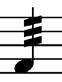 Key clicks and slap tongue, for percussive effect. The upper notehead (x) indicates the key click, the lower note indicates the low percussive slap effect. Abbreviated k.cl.sl.t.
