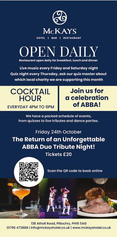 Mid Atholl & Strathtay SWI - The October meeting will be held in the John Kyd Hall, Strathtay on Wednesday, 15 October at 1.30 pm. Ken Alstaff will give a talk on AI. Competitions - Apple crumble and recycled item. Visitors welcome £5. RSABI (previously The Royal Scottish Agricultural Benevolent Institution) - RSABI is a unique Scottish charity with roots going back to 1897. To learn a little more about how RSABI operates, please see the website at www.rsabi.org.uk