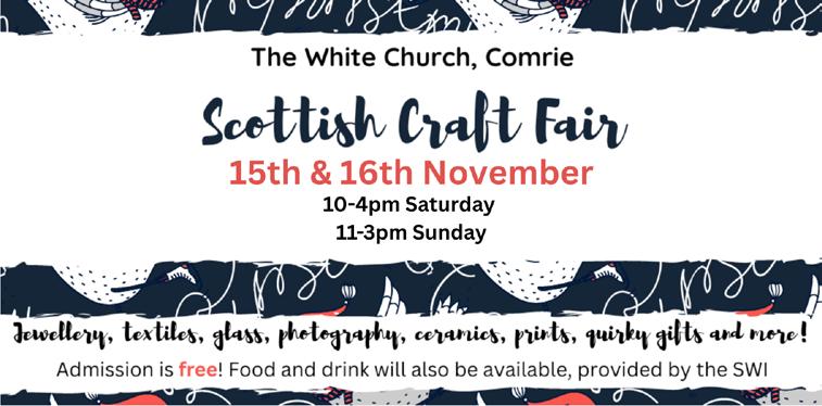 Inner Link Club of Comrie - Inner Link meets at 10.30 am in the Comrie Parish Church Hall. The last meeting for 2025 is 8 December. We have a break for Christmas and start 2026 on 12 January. Membership is open to everyone; come and enjoy coffee and chat and hear our visiting speaker’s talk. Contact: Sharon on 07927 318010 or 01764 679943