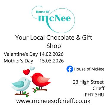 The copy date for the February 2026 edition of The Crieff & Comrie Quair is noon on Tuesday, 13 January. The magazines will be distributed week commencing Monday, 2 February.