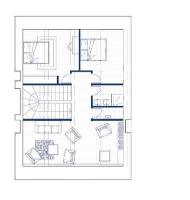 Le R+2 se trouve dans les actuels combles. Afin de garantir un confort optimal de cet étage, des lucarnes sont créées de sorte à garantir un apport de lumière et une hauteur sous plafond de 3,50m dans les chambres.