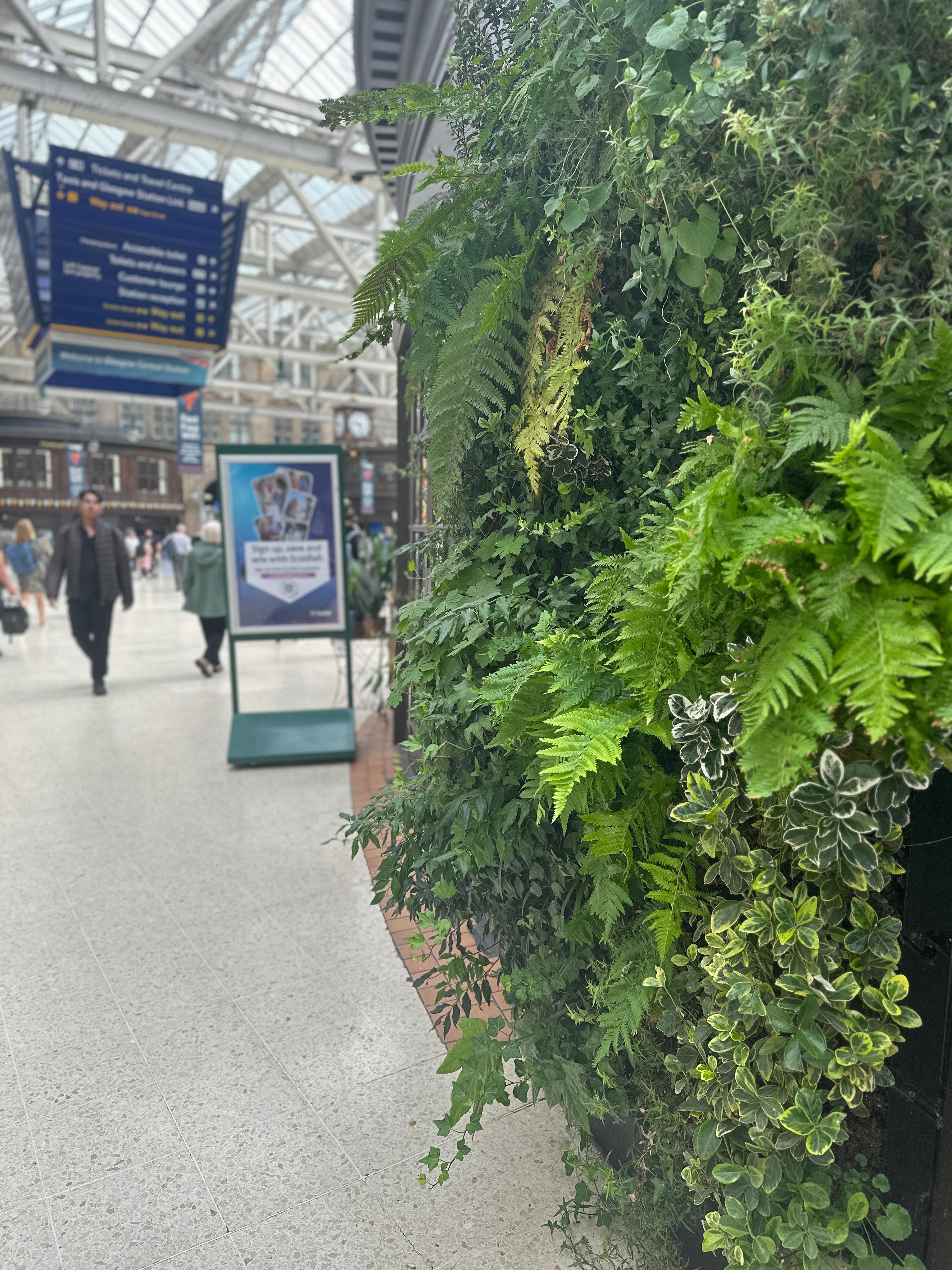 Our planting designs are part of everyday life in Glasgow. You’ll find them in shopping centres, universities, showrooms, wellness spaces, and transport hubs like Glasgow Central Station. Indoors and outdoors, our work brings atmosphere, greenery, and a sense of care to the spaces people move through and spend time in.