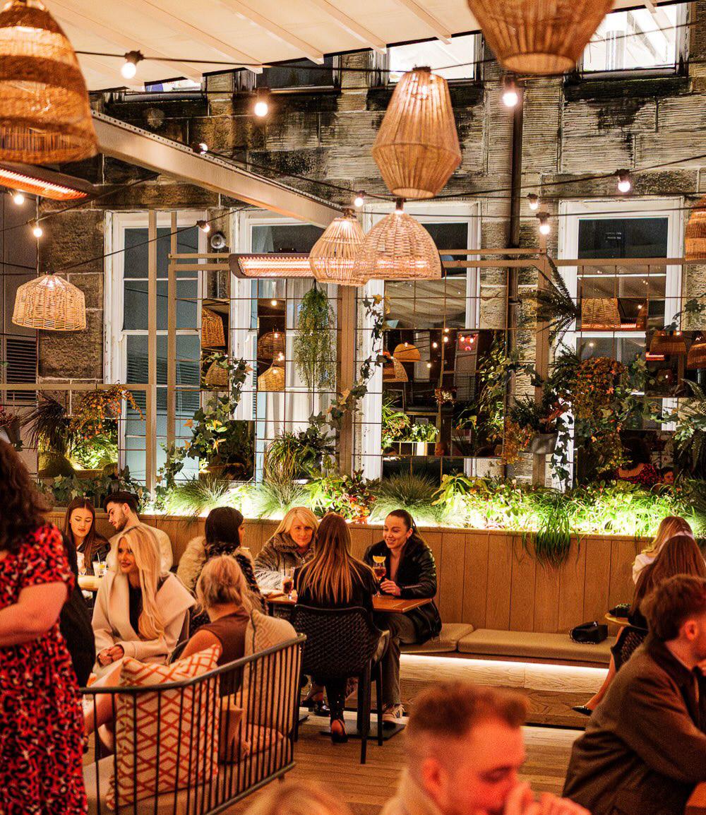We offer an all-in-one outdoor dining design service, including furniture, lighting, heating, and of course, plants.