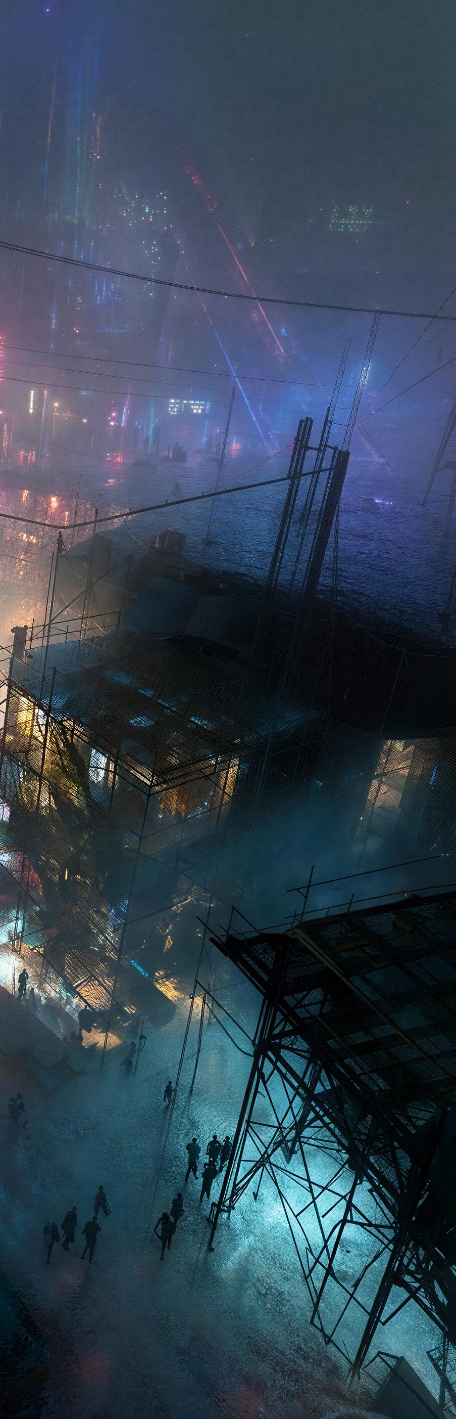 In this vision, the urban fabric transforms into a network of semi-permanent scaffolds, fabric membranes, and modular stage-like structures rising from the streets below. These structures act as platforms for augmented reality, supporting holographic facades and virtual extensions that flicker, glitch, and evolve in real time. People move through the city as though within a vast interactive game via climbing platforms and suspended walkways, navigating layers of projected information and digital landscapes.