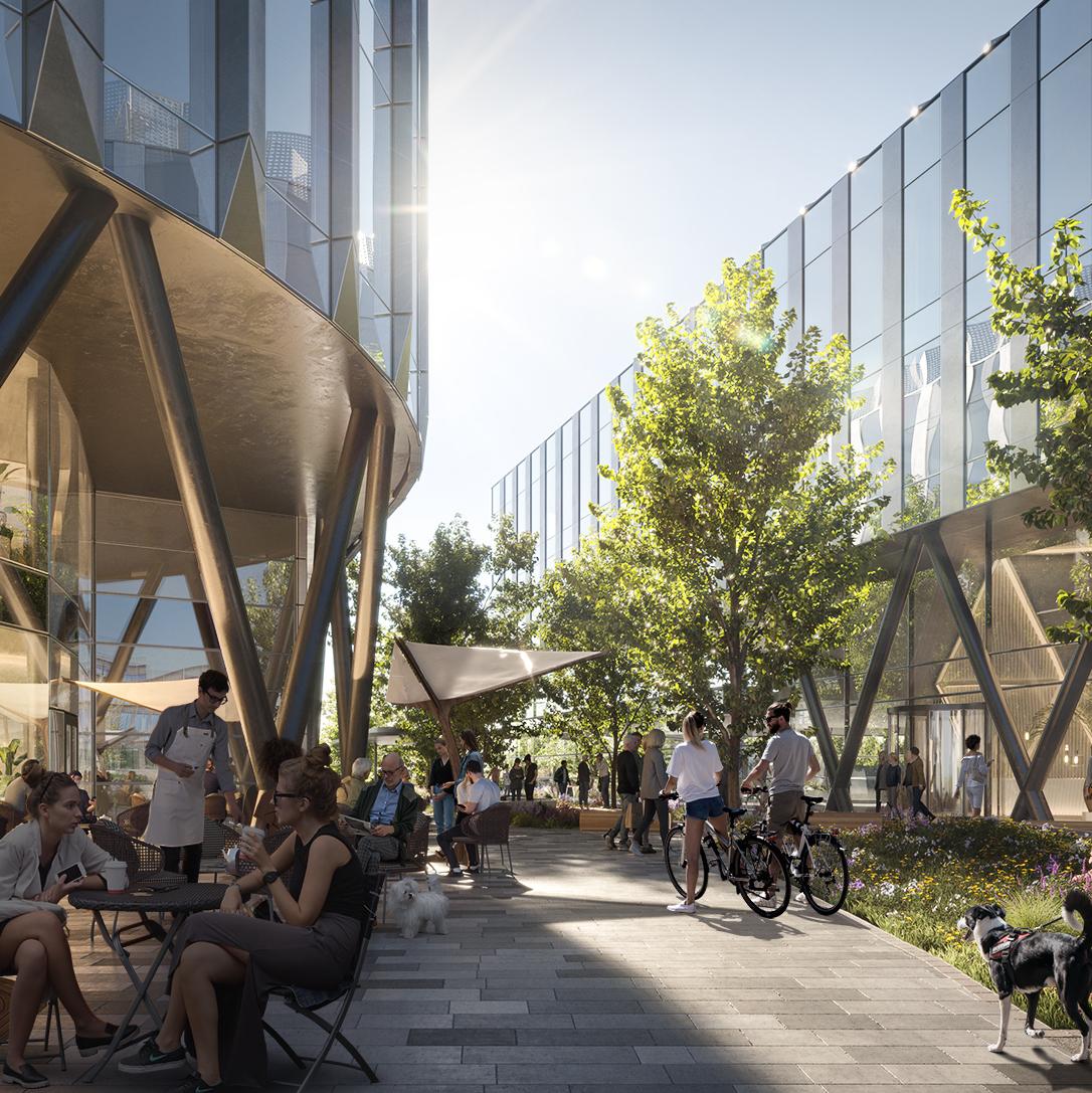 The design redevelops a 143-acre site, formerly a clay mineral quarry, to provide over 1.75 m sq ft flexible studio space and associated amenities within a rewilded environment. The project contributes to increasing the biodiversity through the introduction of ecological corridors, wetlands, and floating reed beds across the site, as well as creating approximately 70 hectares of replacement habitat and woodland nearby.