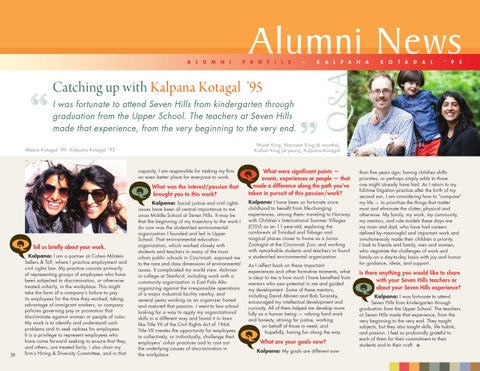 Catching up with Kalpana Kotagal ’95 I was fortunate to attend Seven Hills from kindergarten through graduation from the Upper School. The teachers at Seven Hills made that experience, from the very beginning to the very end.