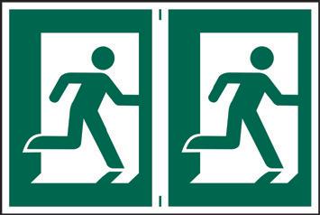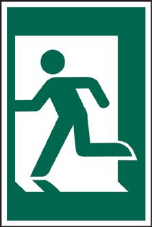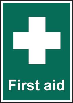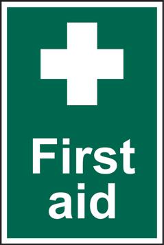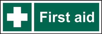 A green rectangle or square with a symbol or text in white providing information about first aid, escape or other safe conditions.