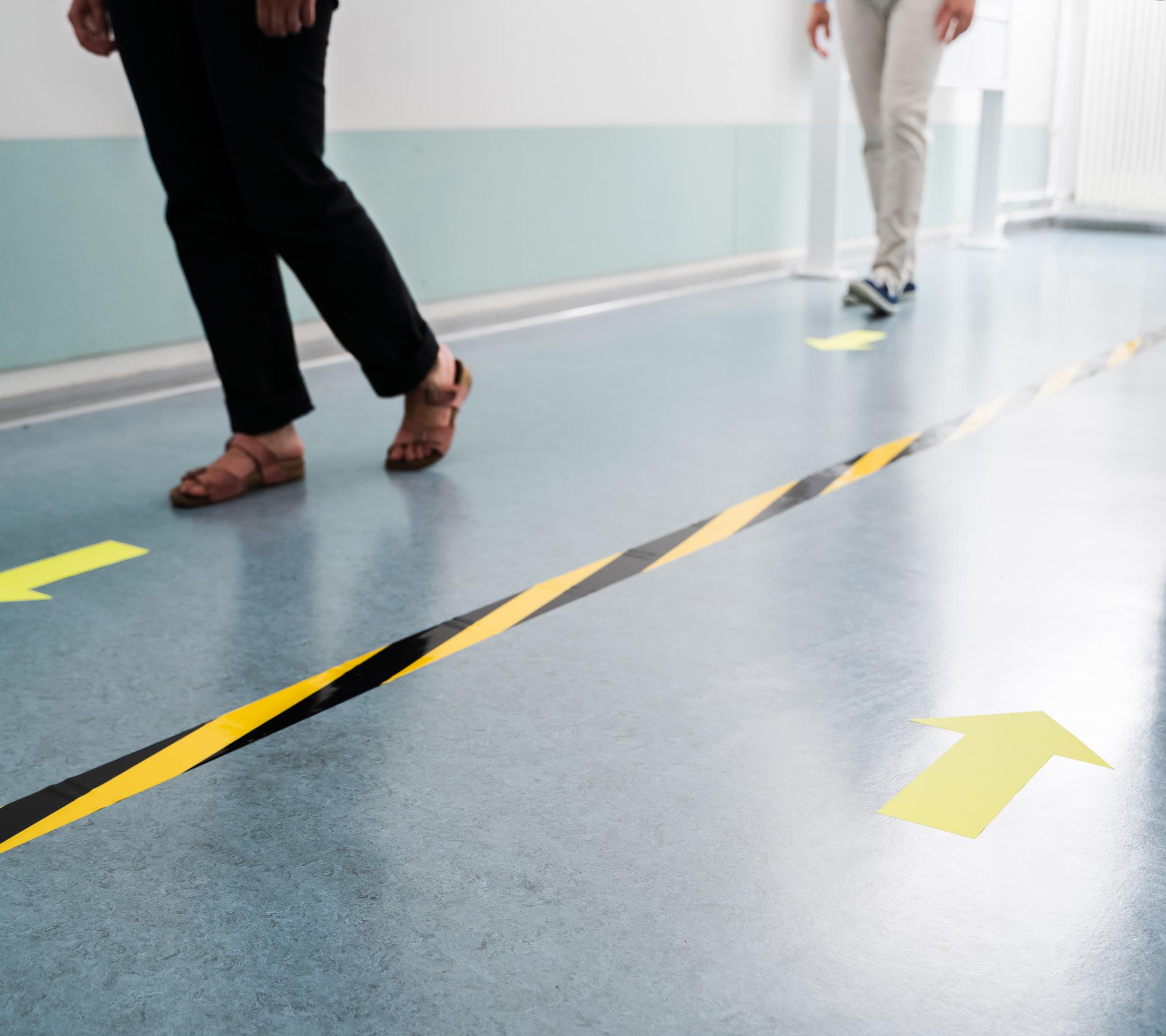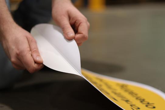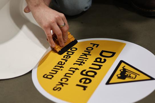 Permanent vinyl floor graphics with an hard wearing laminate face, rated to R9 grade for its anti-slip properties. Suitable for dry, Indoor sealed surfaces.