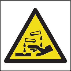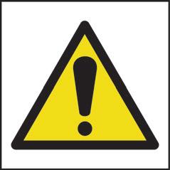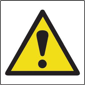 A yellow triangle with a black border and symbol denoting a hazard in the environment.