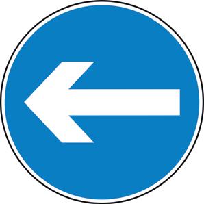 A blue circle containing a white image denoting that a specific course of action must be taken.