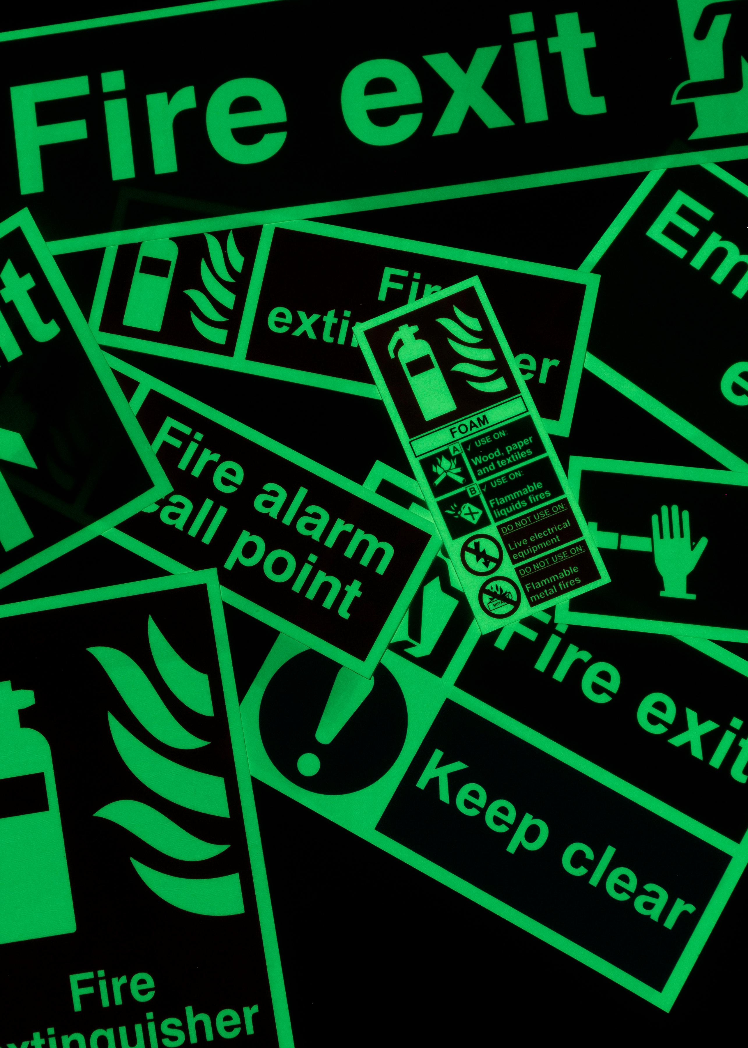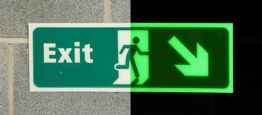 This material glows in dark or low light areas in the event of a power failure or fire. Often specified for Fire Exit signs so that the exit route remains visible.