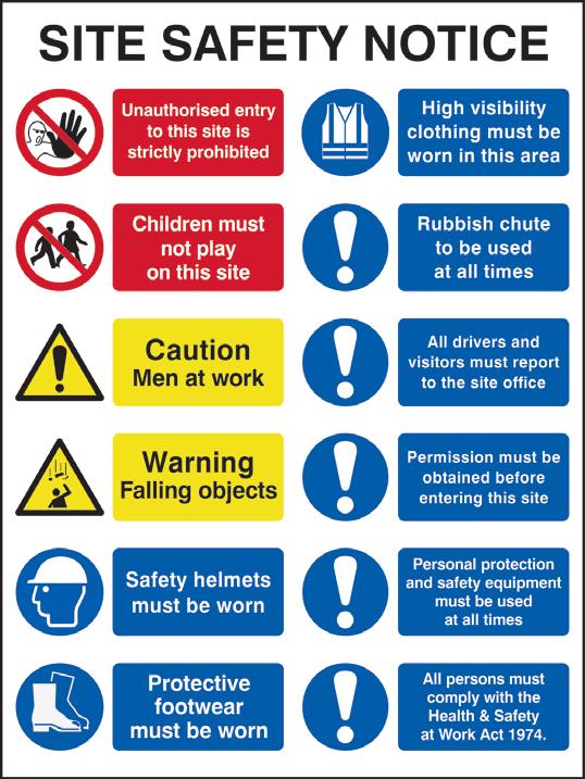 Health and Safety signs can be broken down into the following categories, as specified by British and European standards.