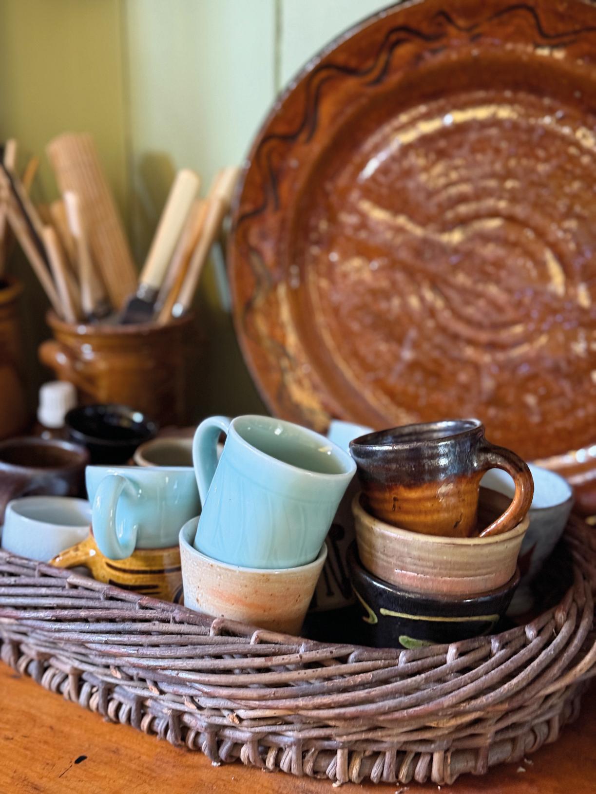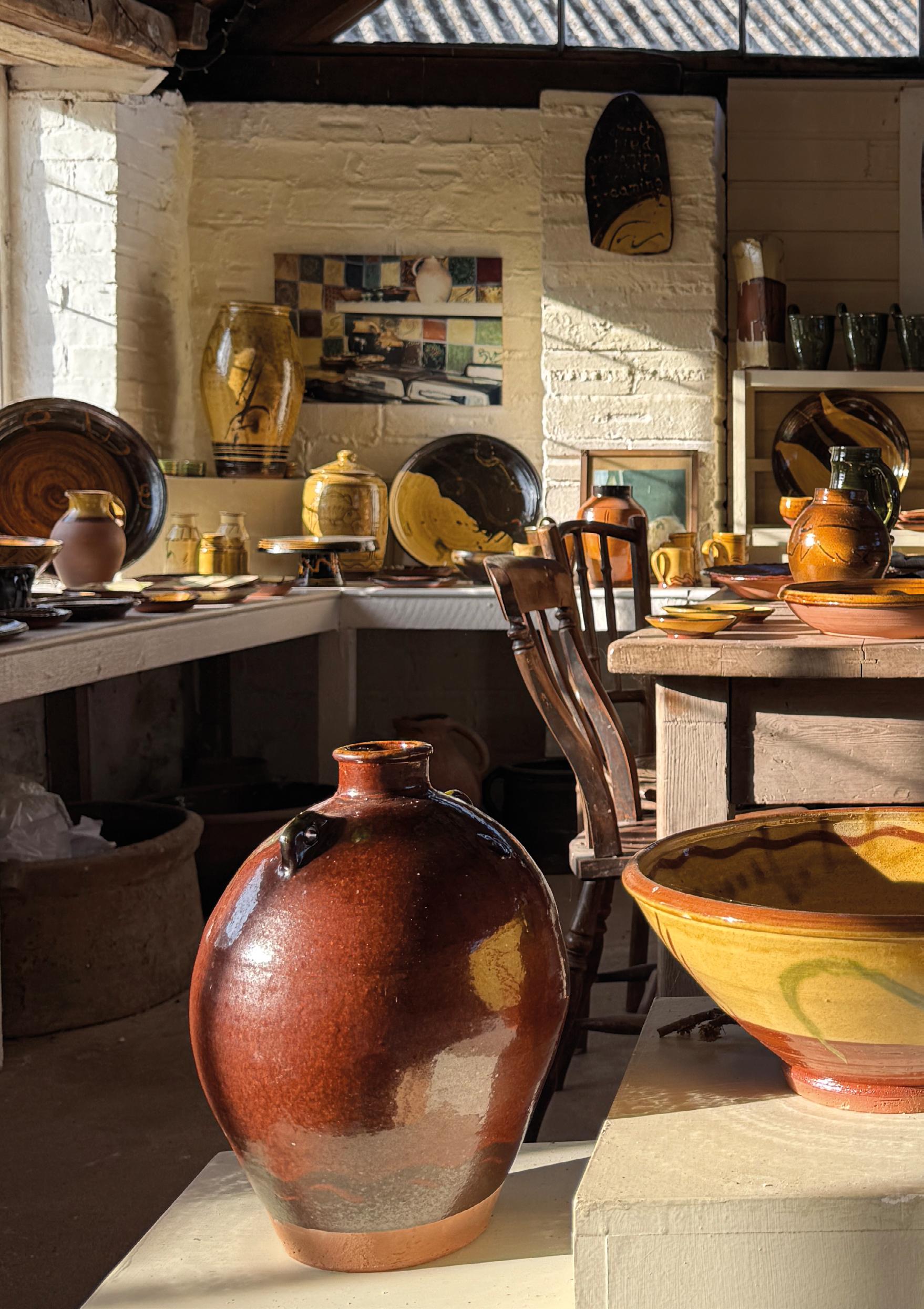 The pottery tradition in North Devon stretches back to the seventeenth century; the clays and slips were already part of the landscape. Bowen continues to dig clay from the stream that runs