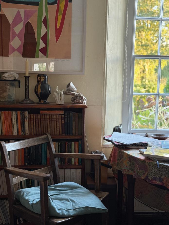 Life at Shebbear is not about being looked after. It is about joining in. The table is laid together, the dishwasher filled, the kitchen conversation wide ranging and unhurried. We unpack the world around the table. Books, films, the garden, politics, pots. Everything is discussed somewhere between preparing supper and clearing plates. Rosie cooks with instinctive ease. To a non cook, it feels like wizardry. A salad assembled without fuss, a casserole that tastes as though it has always existed, homemade sourdough bread and jam at breakfast, porridge offered with or without salt. Nothing elaborate, yet everything considered. There is a quiet ceremony to the kitchen, which is lined with Clive’s pots and a dresser filled with family pots and art and gifts from visiting potters, some of them eminent figures in the field. A cup of coffee might arrive in one of Clive’s cups, or in another potter’s. A plate might prompt a story. The everyday act of eating becomes a quiet acknowledgement of craft and friendship.
