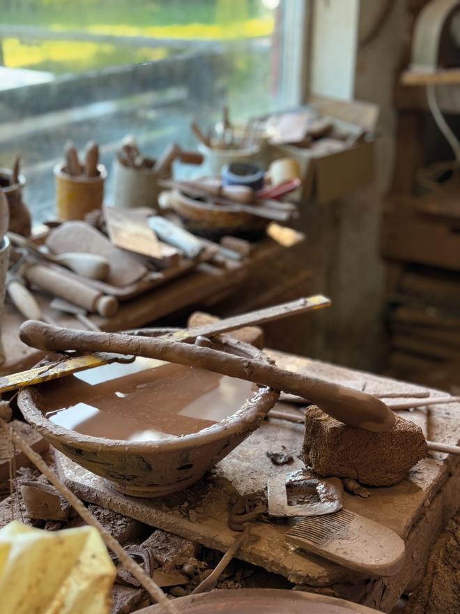Shebbear may appear idyllic on a clear late summer day, but it is first and foremost a place of work. A living has been made here through skill, consistency and attention. Food is grown, meals are cooked, pots are thrown, fired and used. Nothing is treated as precious, yet the life built around these rituals feels deeply valued. The house is full of paintings, books and pots. It is full of conversation and shared history. As a visitor, my task is not to romanticise it, nor to sell it, but to try to understand and convey what makes Clive and Rosie Bowen’s world distinct. Shebbear Pottery is not simply a studio. It is a way of life shaped by discipline, generosity and the steady belief that handmade objects belong at the centre of daily experience.