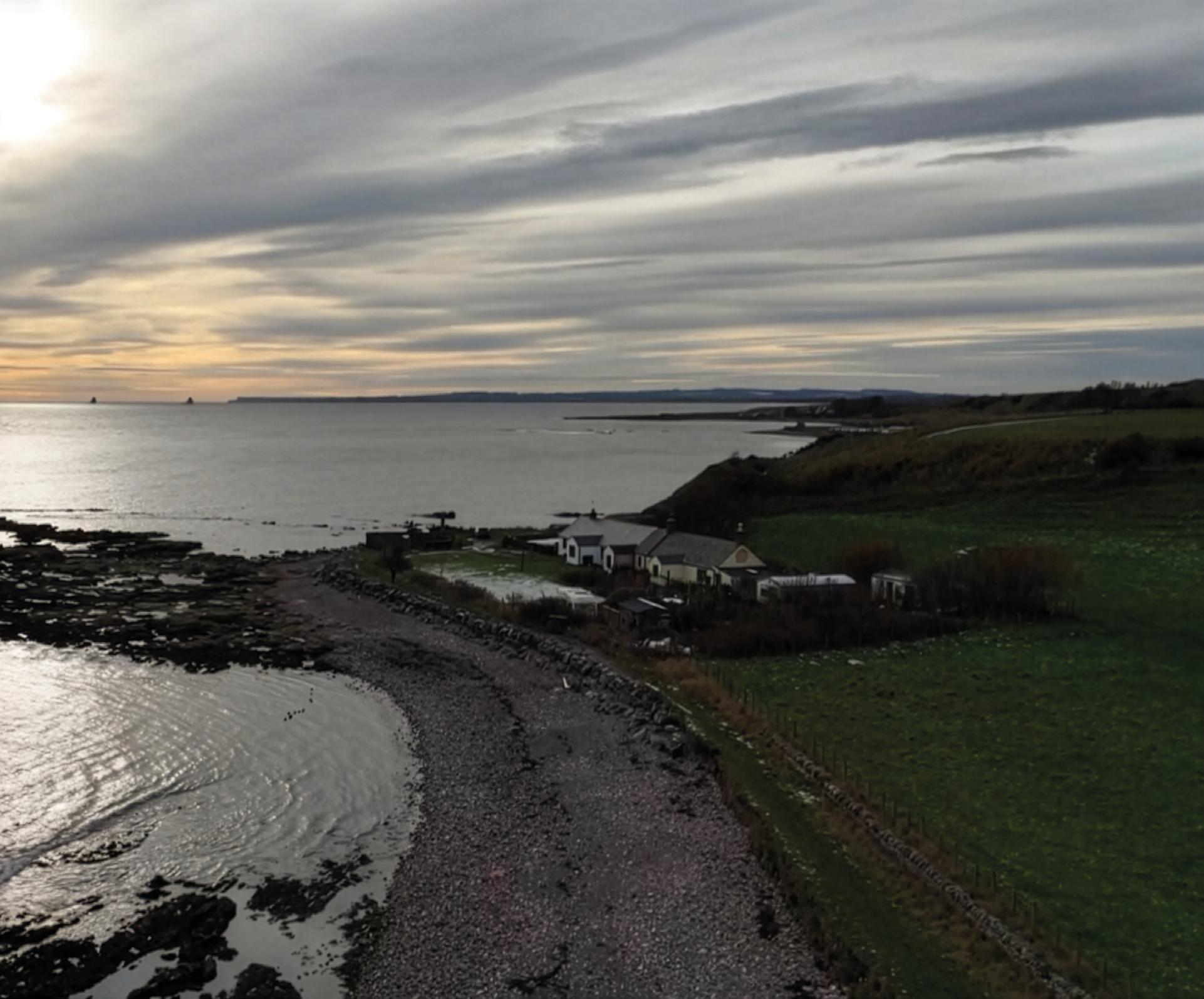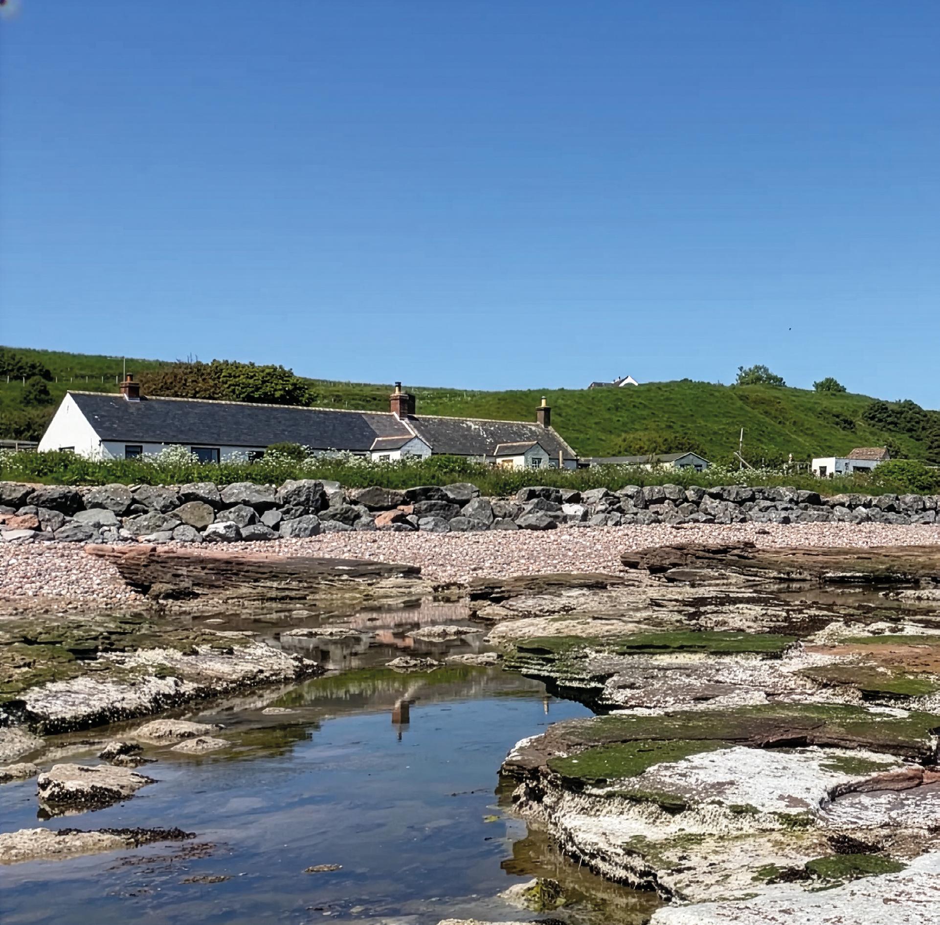 I have been visiting David Cook at Seagreens Cottage for ten years, and it is always a memorable visit. Driving north of Dundee, the horizon begins to open above the pattern of undulating fields through ‘Jim Morrison’ country. Crossing the North Esk above Montrose, the coastline draws close on your right, and the landscape is increasingly claimed by sky and sea. A turn from the main road and a narrow, winding descent brings you towards the shore, where Seagreens Cottage sits just metres from the crashing waves in a landscape largely unchanged for centuries.