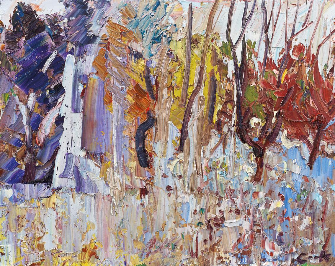 43 Row of Autumn Trees oil on board, 57 x 67 cm