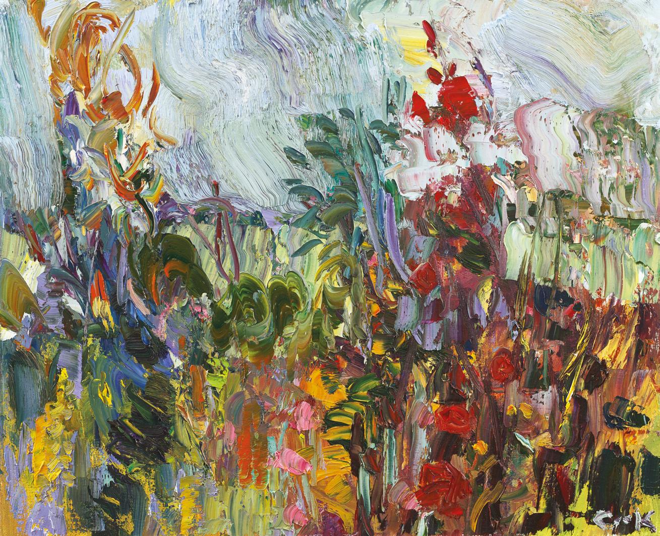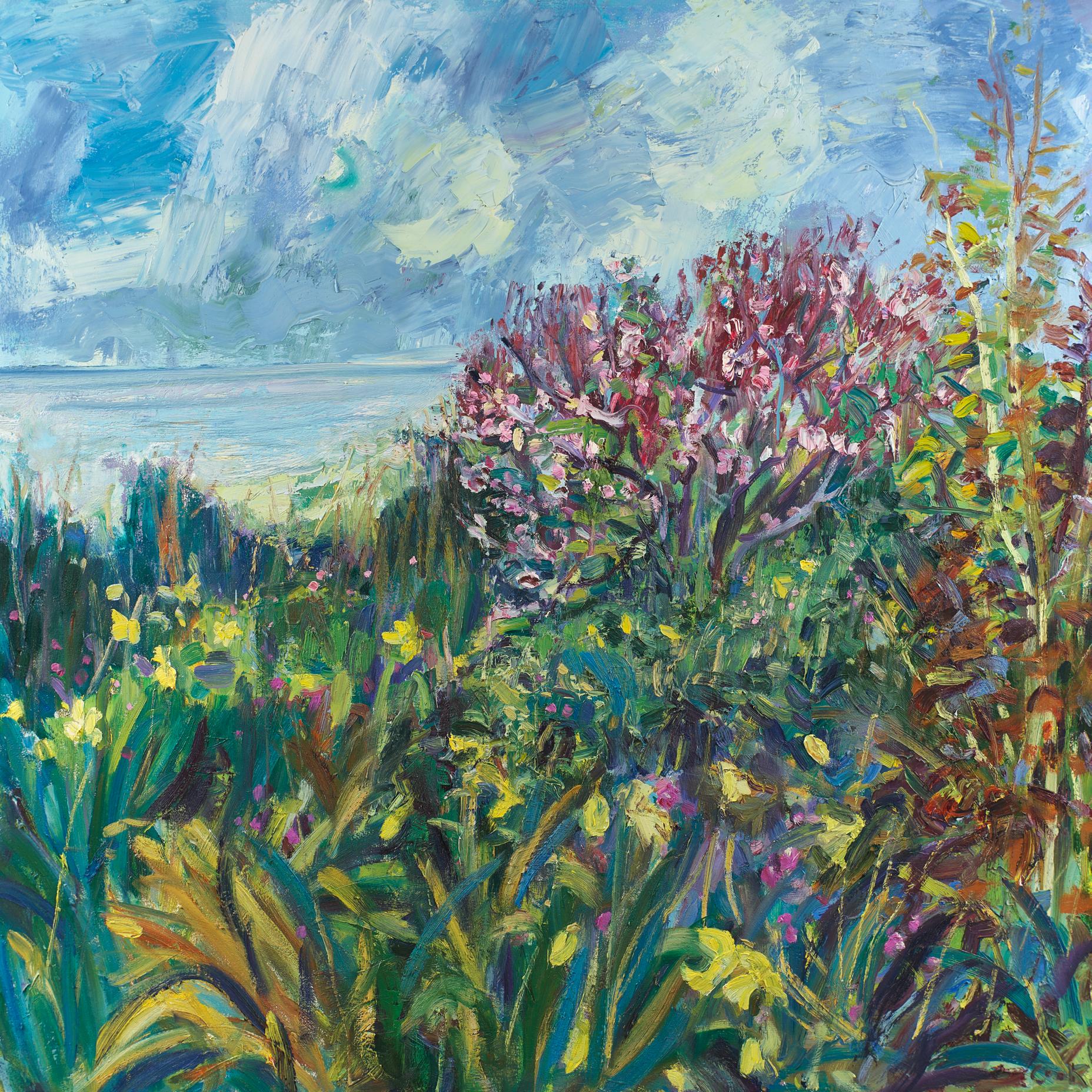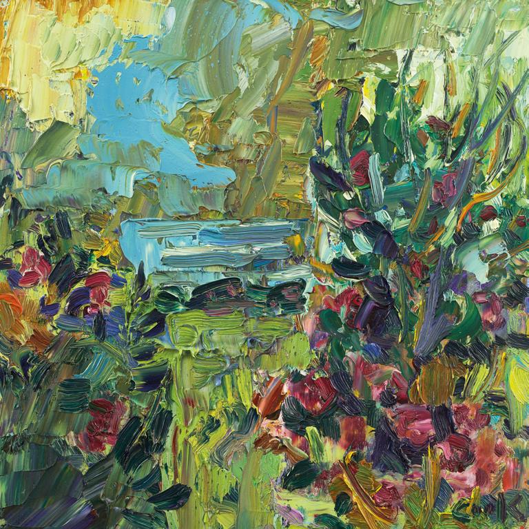 When spring arrives, the garden bursts into life, as do I, a relief from long dark winters. Spring to late summer is always a productive time for me. I wanted to show the garden bursting into life. The colour, the energy. The garden seems to pour into the studio. I immersed myself fully in and became as close as possible to the elemental force of nature. I tried and see more deeply the elements working their magic, to forge and create the way the garden grows.
