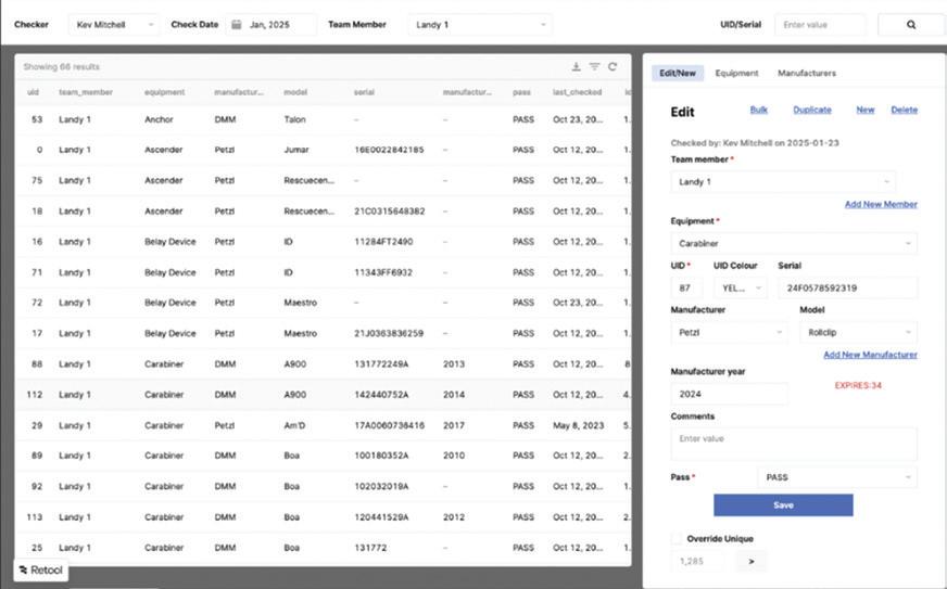 Most teams have had equipment officers who mainly looked after team equipment, ropes, slings, cas bags etc. As the 90s progressed equipment started to become routinely recorded and inspected.