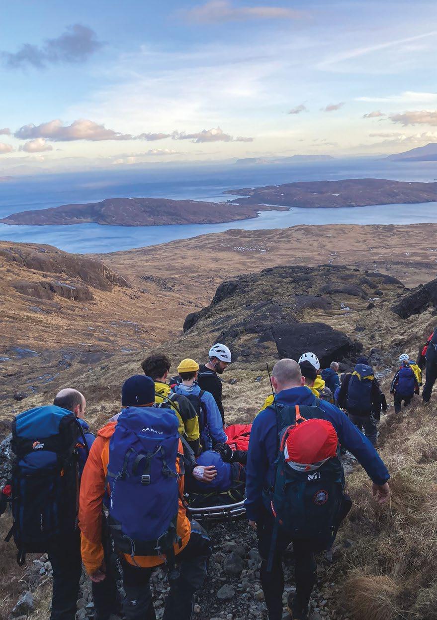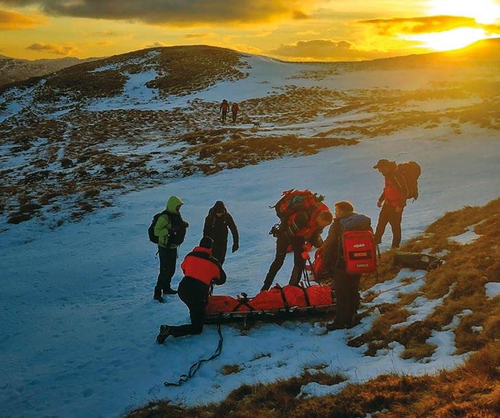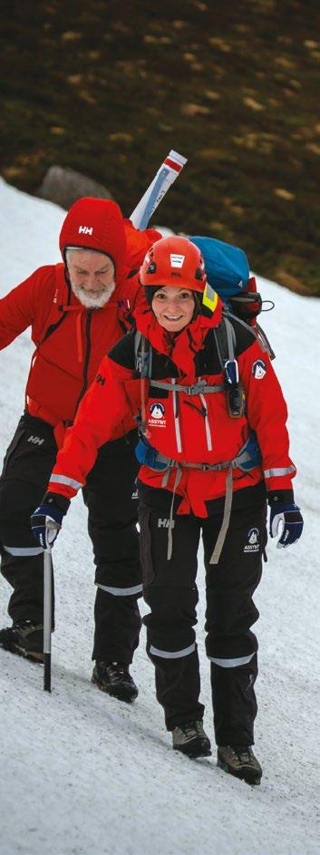 Last year Scottish Mountain Rescue member teams responded to 870 call-outs and helped 677 people. The Mountain Rescue Teams are there for people when they slip on rocky paths, when they get lost in bad weather and when serious and lifethreatening accidents happen in the outdoors. Many people don’t realise that the teams are also there for their communities. They help with searches for vulnerable missing people and when the emergency services need additional support with major incidents such as flooding or snowfall and in so many other scenarios.