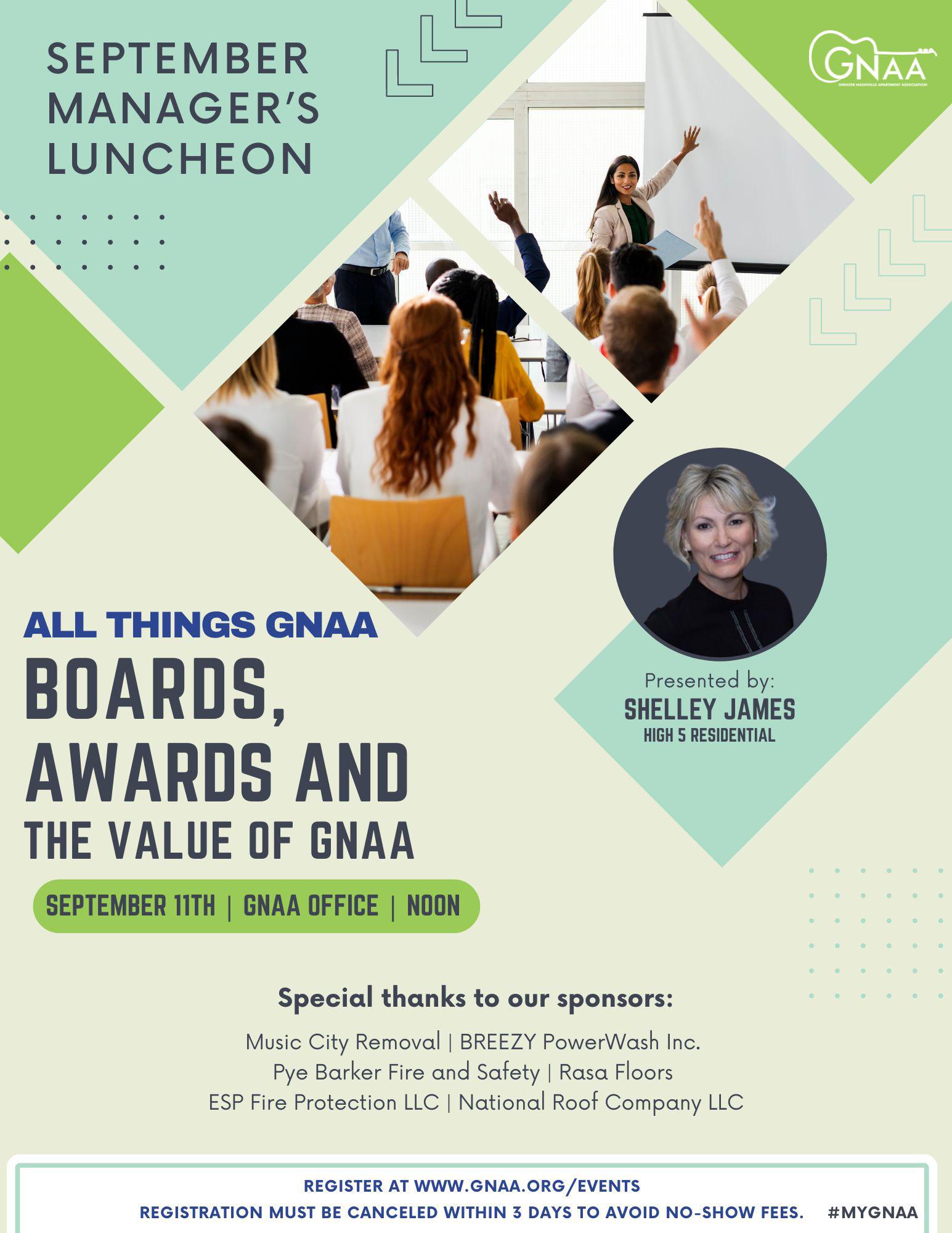 The GNAA Membership Committee invites all new members and current members to partake in a membership networking mixer We will have members speak on topics of how to maximize your membership and to connect with other GNAA members. This is a FREE event and is open to all members of GNAA!