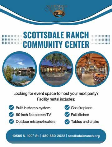 The Scottsdale Ranch Community Association and the active participation of Ranch residents design the lifestyle, integrity, and aesthetics of our community. Visit our website at www. scottsdaleranch.org for more information about our fabulous community!