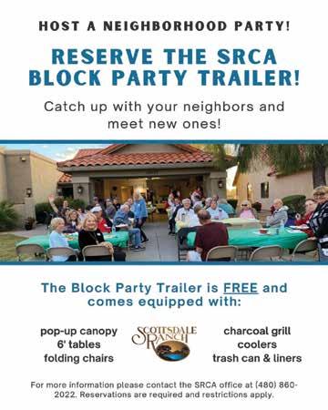 Sign up to be on the distribution list by submitting your information on the front page of the SRCA website at scottsdaleranch.org. Your emailaddresswillonlybeusedfor ScottsdaleRanchCommunityAssociation communications SRCA considers an email addresspersonalinformationoftheindividual memberandeligibletobewithheldfromany recordsrequestunderA.R.S. §33-1805.