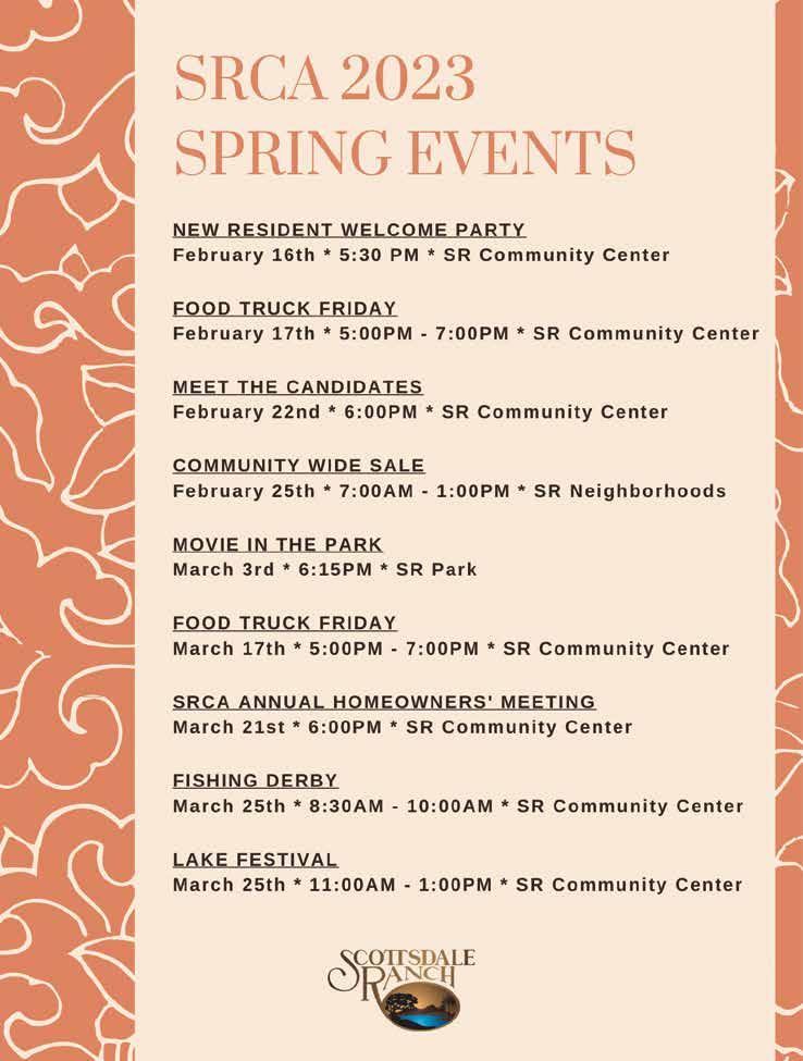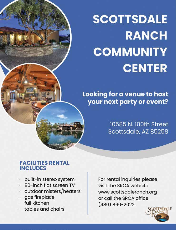 For up-to-date information, please visit our website at www. scottsdaleranch.org or sign up to receive our weekly email blasts.