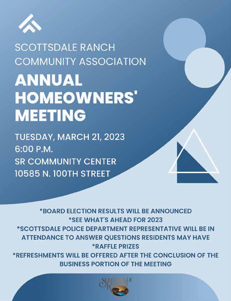 “The Mission of Scottsdale Ranch Community Association is to serve as the organization through which its residents may sustain and enhance the character, quality of life, and desirability of our community.”