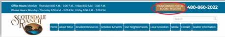 To create your SRCA community portal account simply visit our website at www.scottsdaleranch.org, click on the “Homeowner Portal Login/Registration” button and follow the instructions. To obtain your account ID, complete and submit the request form on the homepage of the website. For additional information or assistance, please contact Genevieve Long, SRCA Community Relations, at (480) 860-2022 or by email at glong@scottsdaleranch.org
