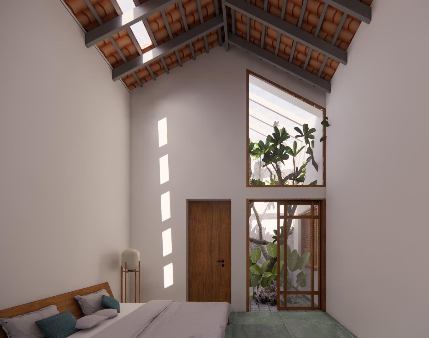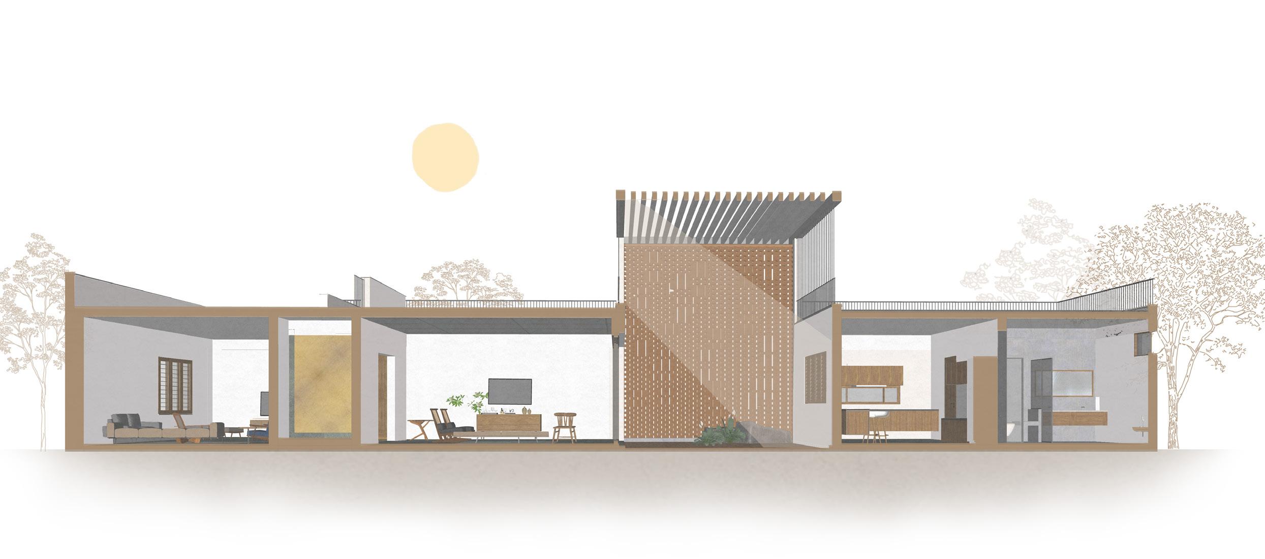 A contemporary house in terms of form and materiality with a rural essence of having not so defined spaces that have an open quality where the spaces extend and intertwine with each other that caters to a toddler and the young parents.