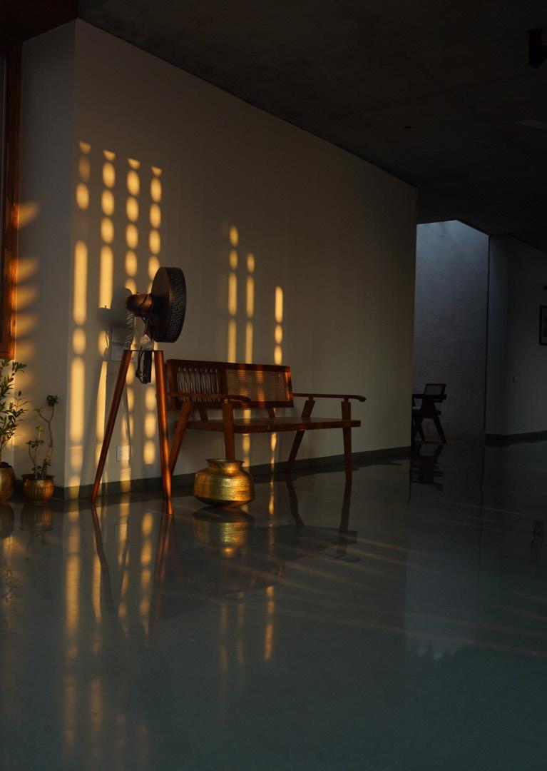 Light and shade passing through the jali, laves the floor and walls with constantly changing patterns throughout the day.