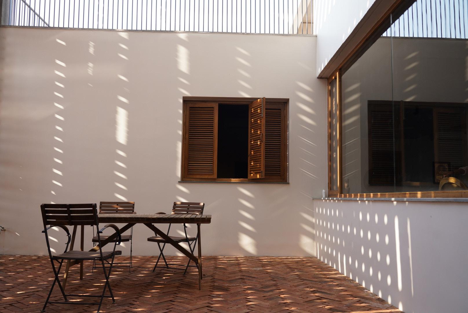 unfolded lets subtle breeze of air play of light, sometimes coordinatto the courtyard pergola above.