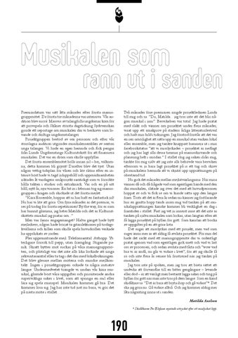 Två månader före premiären ringde projektledaren Linda till mig och sa: ”Du, Matilda... jag tror inte att det blir någon musikal i juni”. Besvikelsen var total. Jag hade pratat med släkt och vänner om projektet under flera månader, visat upp ett smakprov på stadens årliga litteraturfestival och haft min bild i tidningen. Jag förstod förstås att det var en ren omöjlighet att sätta upp en musikal utan varken lokal eller ensemble, men jag tänkte knappast basunera ut i min facebookstatus ”att vi misslyckades – projektet är nedlagt och jag har lagt alla dessa timmar på manusskrivande och planering helt i onödan.” I stället slog jag saken ifrån mig, tänkte för mig själv att jag inte alls behövde vara besviken eftersom vi ju bara lagt projektet på is ett tag och skrev på musikalens hemsida att vi skjutit upp uppsättningen på obestämd tid. Nu gick det månader mellan mejlutväxlingarna. När mina vänner då och då frågade vad som egentligen hände med den där musikalen, slätade jag över det med att huvudpersonen hoppat av och vi fick se om vi kunde sätta upp den längre fram. Trots att det är flera år sedan nu känner jag fortfarande hur en gnutta hopp tänds inom mig vid tanken på att musikaluppsättningen kanske kommer bli verklighet en dag i framtiden i stället. Fast jag vet ju innerst inne att det inte är tanken på själva musikalen som lockar, utan längtan efter att få lägga projektet på hyllan för gott. Som känslan att bocka av uppgifter på en att-göra-lista. Det suger att misslyckas med ett projekt, men vad som suger ännu mer är att aldrig få avsluta projektet. För min del hade det räckt med ett manusgruppmöte där vi ordentligt pratat igenom vad som egentligen gick snett och vad vi lärt oss av processen, och sedan avsluta med tårta och ”wow vad bra vi är ändå, nu går vi vidare i livet”, för att jag skulle få ro och inte flera år senare bli frustrerad när jag tänker på musikalen. Jag tror inte på spöken, men jag tror att bästa sättet att undvika att förvandlas till en bitter gengångare – levande eller död – är att vänligt men bestämt lägga saker och ting på hyllan för gott när man inte tror på dem längre. Som en känd skidåkare sa: ”Det är bara att bryta ihop och gå vidare”*. Det ska jag göra nu. Gå vidare alltså. Och jag kommer aldrig mer låta någonting rinna ut i sanden. Matilda Axelson * Skidåkaren Per Elofsson myntade uttrycket efter ett misslyckat lopp.