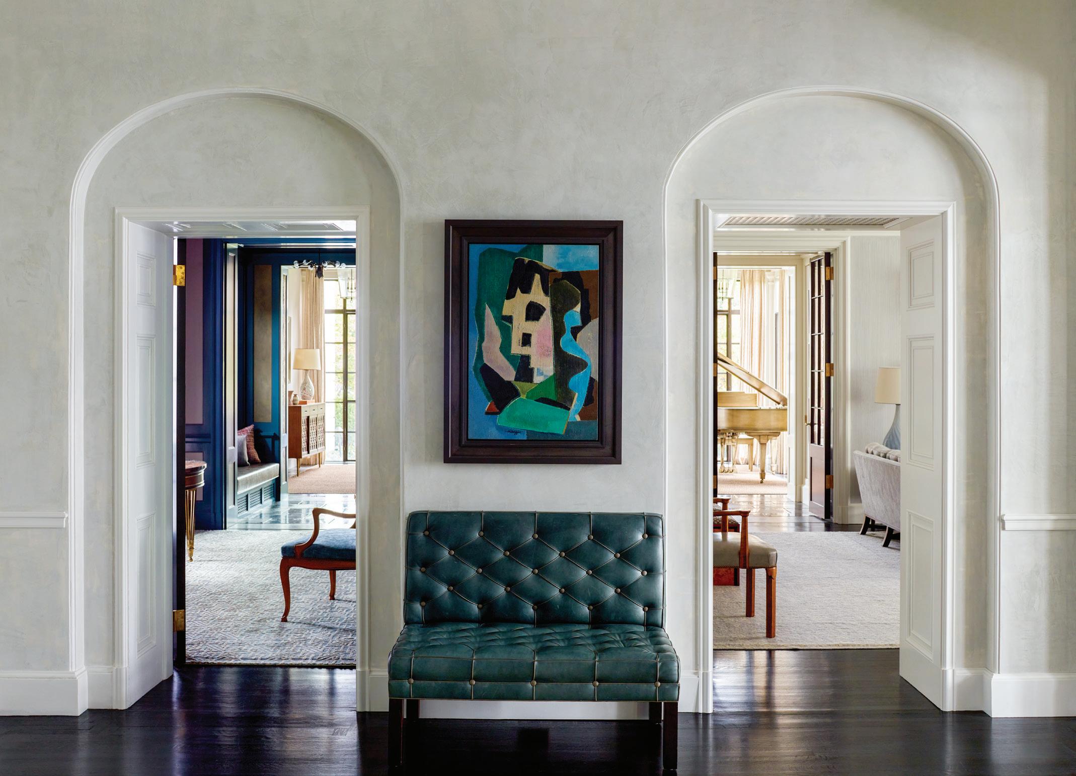 Landmarked by the Town of Palm Beach in 2020, The Colony Hotel was designed by the architectural firm of Simonson & Holley and erected in 1946-47 during the town's second building boom. The iconic British Colonial style “Pink Paradise” has hosted many famous dignitaries over the last 75 years, such as the Duke and Dutchess of Windsor, who resided in one of the penthouse suites for multiple seasons. Under the leadership of owners Sarah and Andrew Wetenhall, the hotel has undergone an extensive refurbishment in recent years. They brought in a fresh new look (and clientele) while respecting the hotel's landmark status. The newly re done lobby, now called the Living Room, features a fantastical de Gournay mural, which was inspired by a postcard that illustrated the original mural from 1947, that spans the entire lobby.