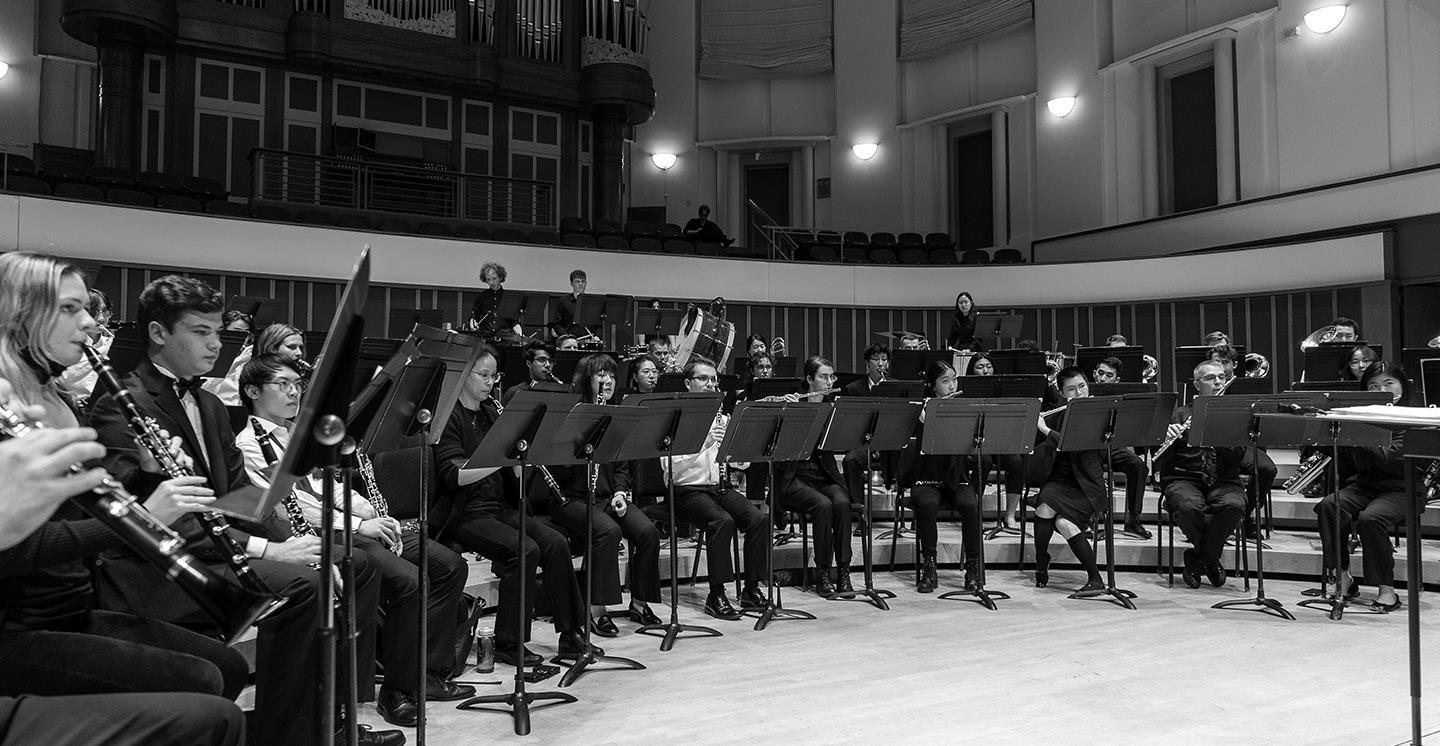 The EWE performs two concerts each semester, regularly participates in world premieres of new music, tours the United States and abroad, and is a national leader in the commissioning of new music, including works by Warren Benson, Steven Bryant, Stephen Paulus, Bruce Broughton, Jennifer Higdon, Libby Larsen, John Mackey, David Maslanka, Jonathan Newman, and many others. In 2017, the ensemble was showcased by the College Band Director’s National Association among its peer institutions with a citation for musical excellence at the “Small Band Showcase,” presented at the Association’s National Conference in Kansas City.