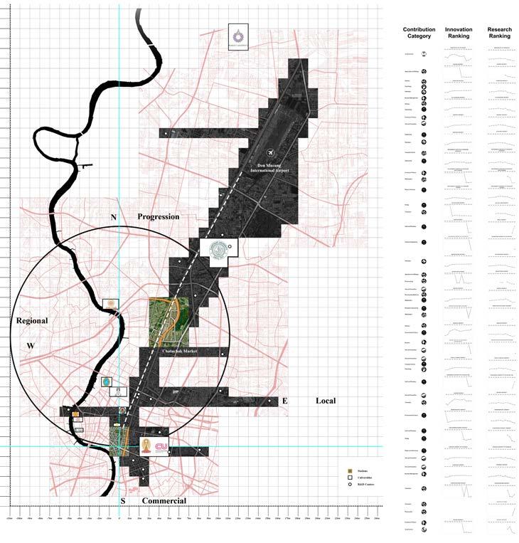 And, the transit system connecting the two stations also acts as a major transportation device for university students. With the site located next to Chulalongkorn University serving as a major influx of highly educated individuals, the tracks south to north of the site will furthermore connect to other university students changing what is just a simple transportation hub into a gathering of educated personnel. The surrounding facilities around the tracks also include military/government facilities, research, and development center, and tourists. Allowing the site to become a gathering of different views, ideas, and knowledge.