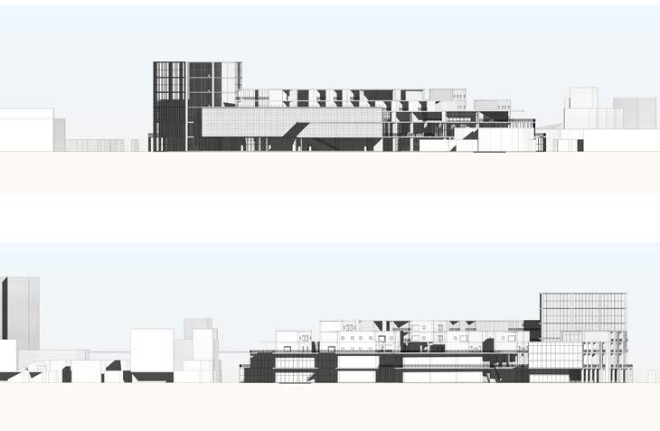 The model indicates the existing facilites around the north/south track connecting new and old stations.Mapping the possiblities the track serves and also the amount of transit station around the site.