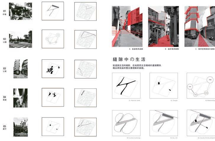 Daily life as an exhibition topic, we believe that the best introduction for the exhibition space is the five-channel district. We hope to integrate the exhibition within the community, eliminating the boundaries of an exhibition space and let the community become a large exhibition. From Dutch colonies to the Qing Dynasty and the Japanese occupation period, Tainan became a mix in culture and heritage, but it also has become a part of Tainan’s urban context. Time is a proposition for people. Tainan is the earliest development county but also the longest stagnant of time. It remains in people’s memories and is distinct on the street’s facade. The axis of time is continuously defined through the period of colonies. Those remains can still be seen, but those disappeared can only exist in memories.