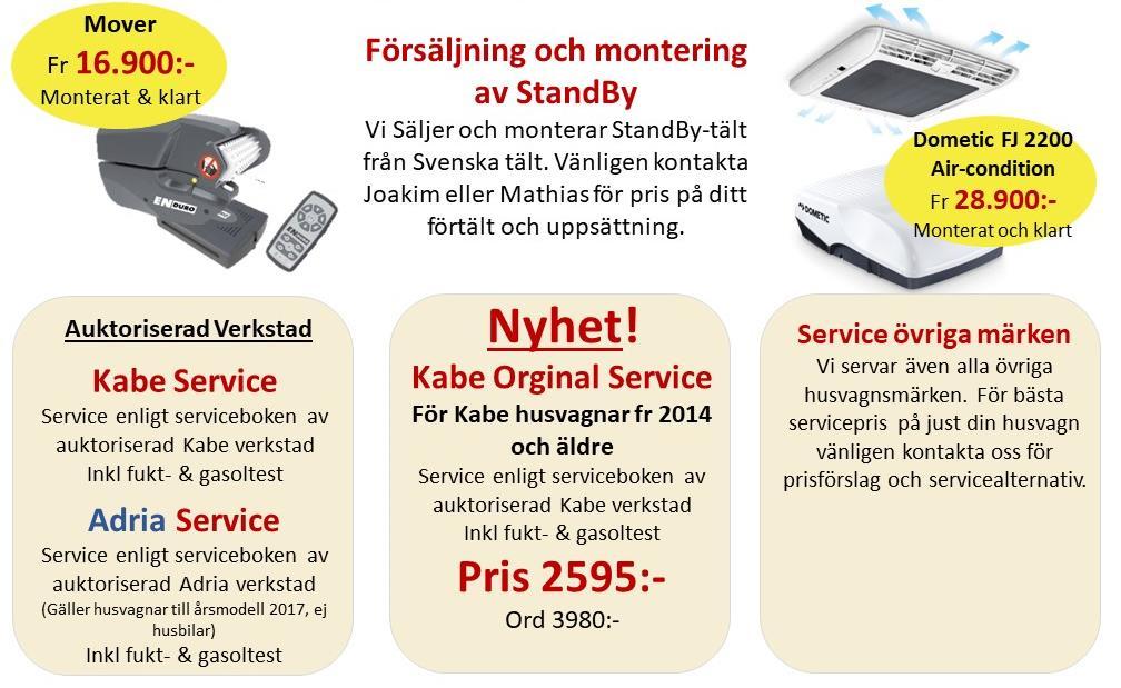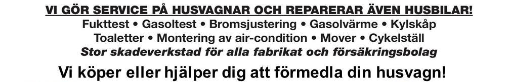 Över 30 års erfarenhet av husbilar och husvagnar gör oss till din självklara förmedlings partner. Vi förmedlar tryggt och smidigt! Vi ansvarar för: Annonsering, försäljning, förhandling, finansiering, säljavtal, garanti, inbyte, service, test och utbetalning. Jämför med oss innan du byter in ditt fordon!