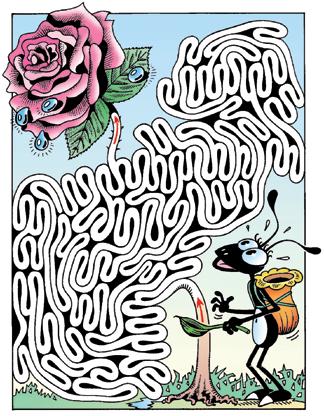 Myran Nina m å ste samla daggdroppar. Kan du hj ä lpa henne att komma till rosen?