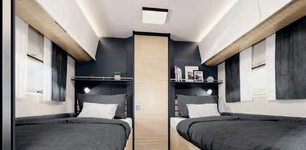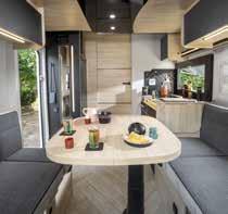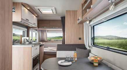 Våra husvagnar är noggrant utformade för att ge dig en rymlig och hemtrevlig känsla, med stilrena och smakfulla interiörer.