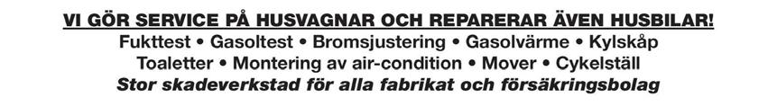 Över 30 års erfarenhet av husbilar och husvagnar gör oss till din självklara förmedlings partner. Vi förmedlar tryggt och smidigt! Vi ansvarar för: Annonsering, försäljning, förhandling, finansiering, säljavtal, garanti, inbyte, service, test och utbetalning. Jämför med oss innan du byter in ditt fordon!